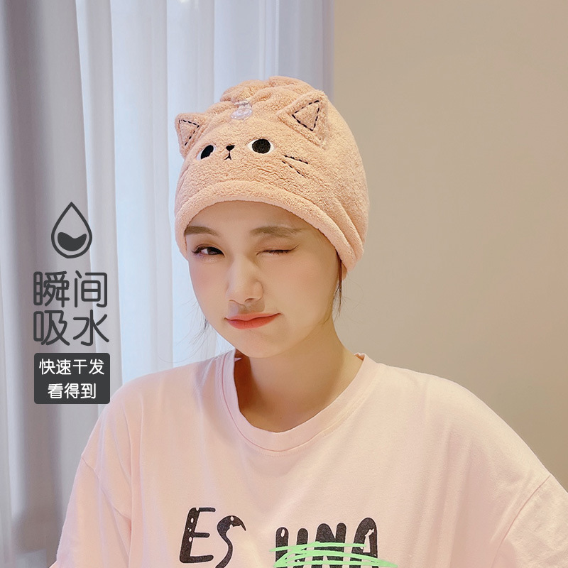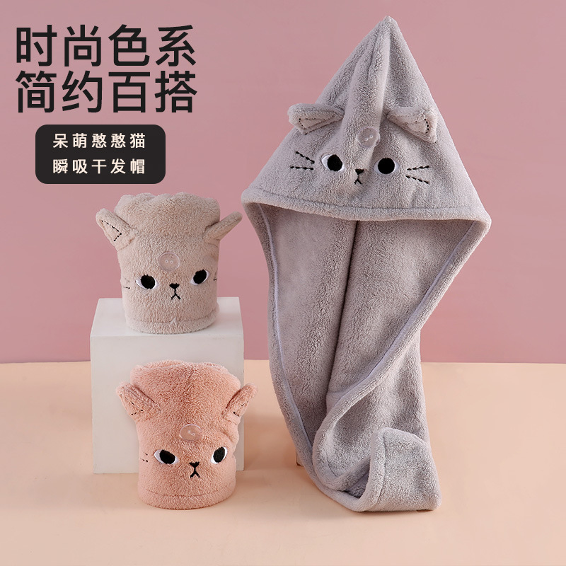 ins风卡通憨憨猫耳朵干发帽洗脸头带化妆卸妆珊瑚绒吸水干发巾
