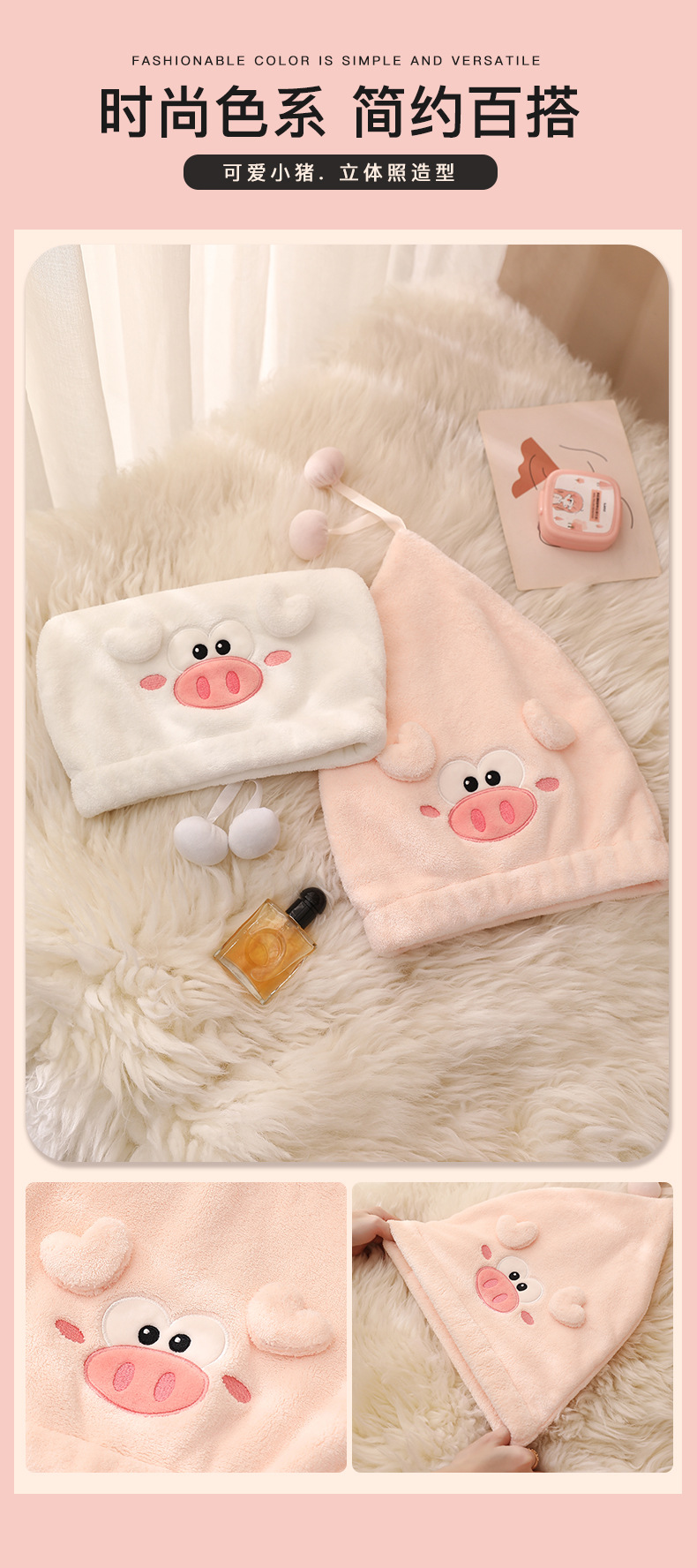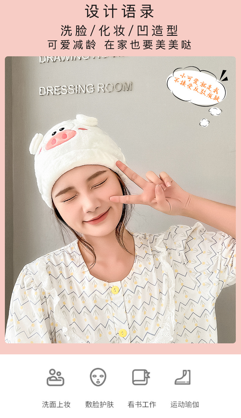 卡通小猪乔珊瑚绒公主帽洗脸绣花浴帽女吸水加厚发帽