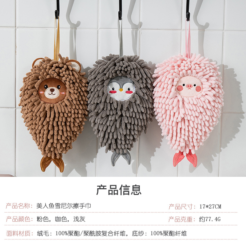 新款美人鱼雪尼尔擦手球吸水速干加厚擦手巾家用儿童擦手毛巾挂式