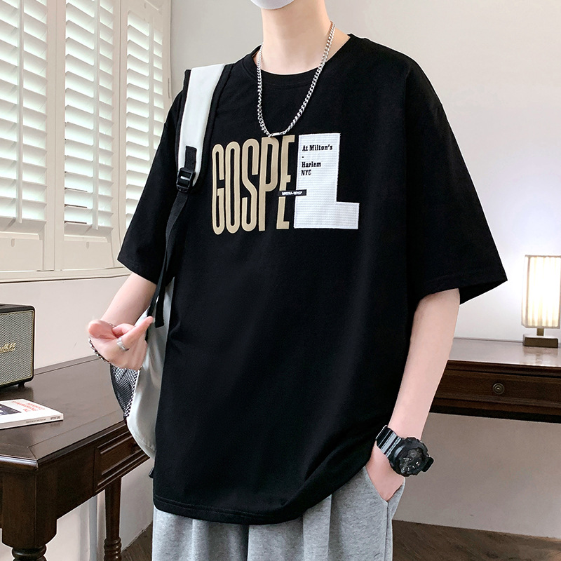 潮牌痞帅时尚t恤男生夏季新款宽松百搭字母印花圆领休闲上衣