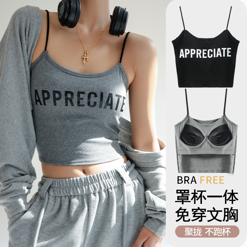 带胸垫一体抹胸防透打底吊带背心女夏季新款纯棉外穿性感美背上衣