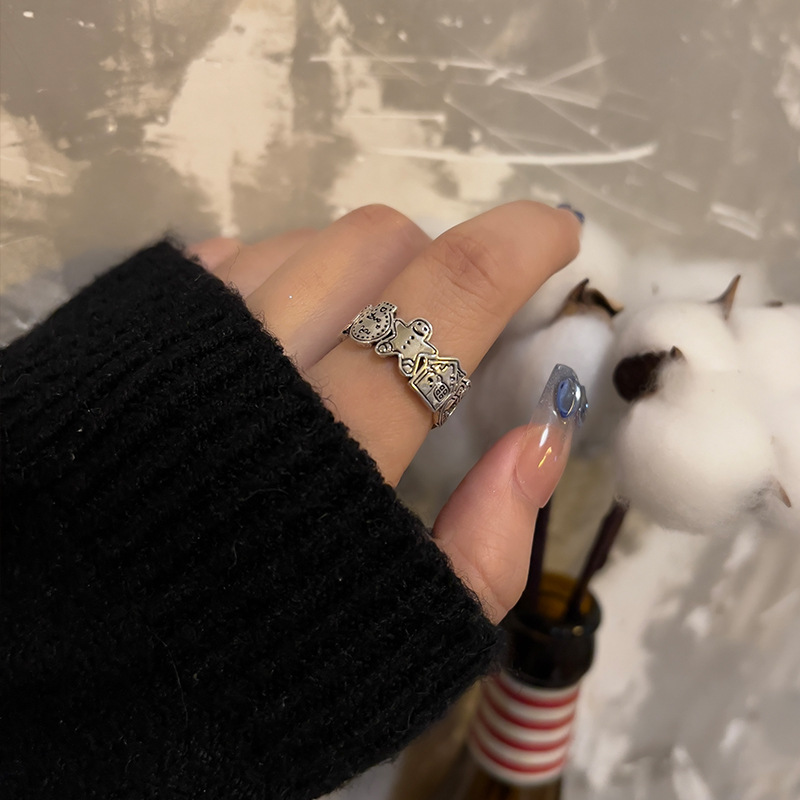 圣诞复古个性涂鸦姜饼人雪人戒指 ins潮可爱开口可调节金属食指环