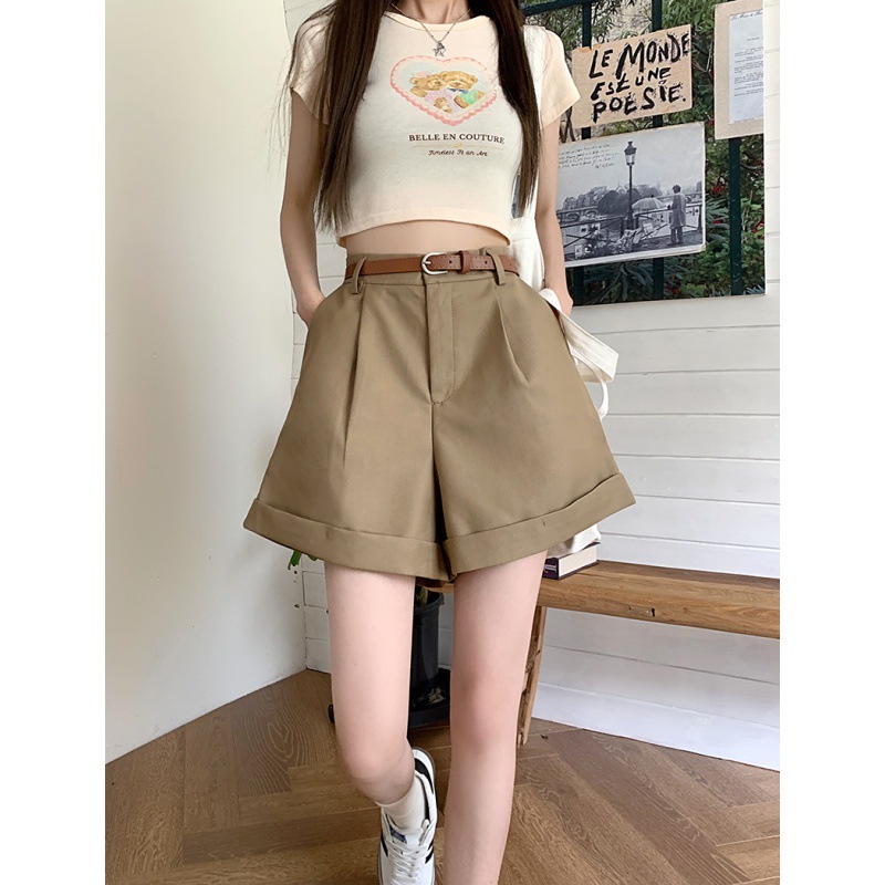 实拍夏新款休闲五分西装短裤女韩版百搭宽松A字卷边阔腿裤3色