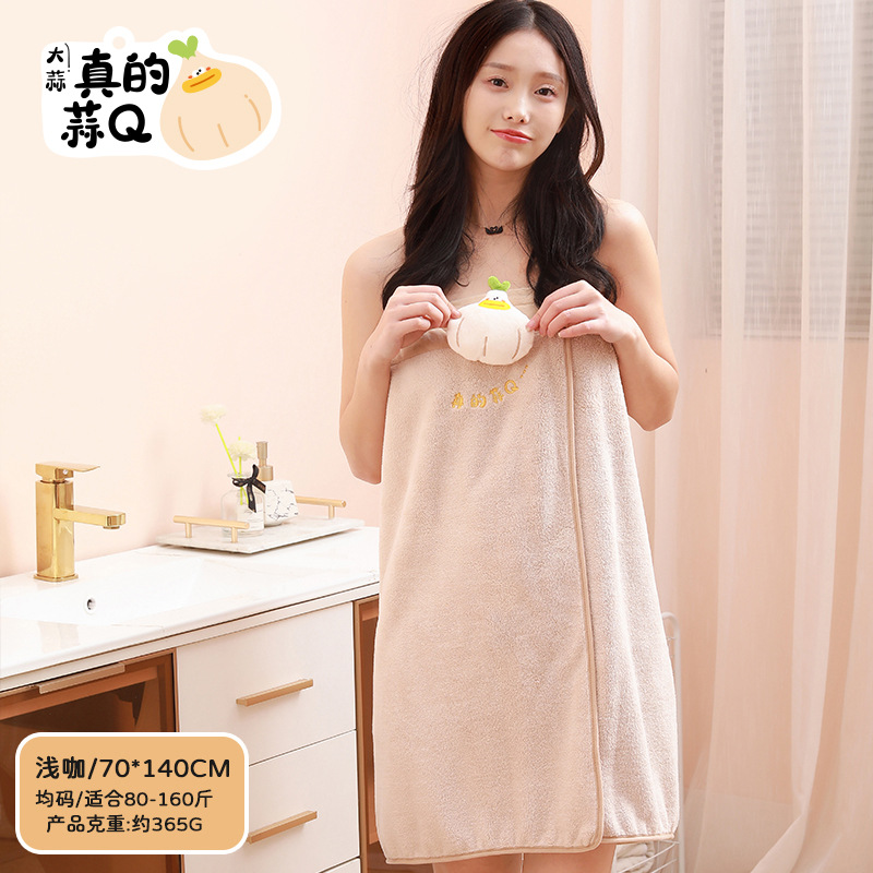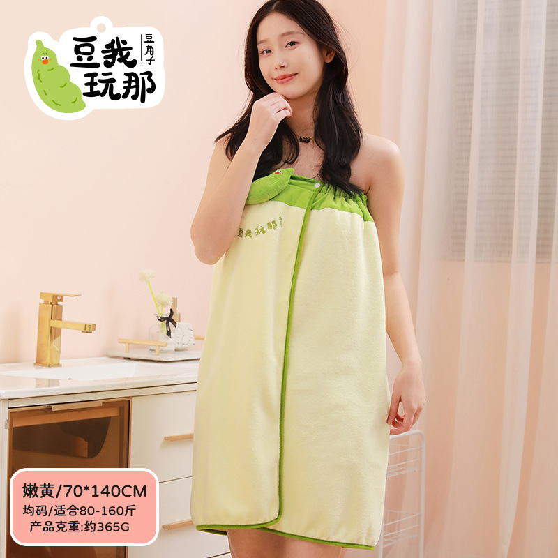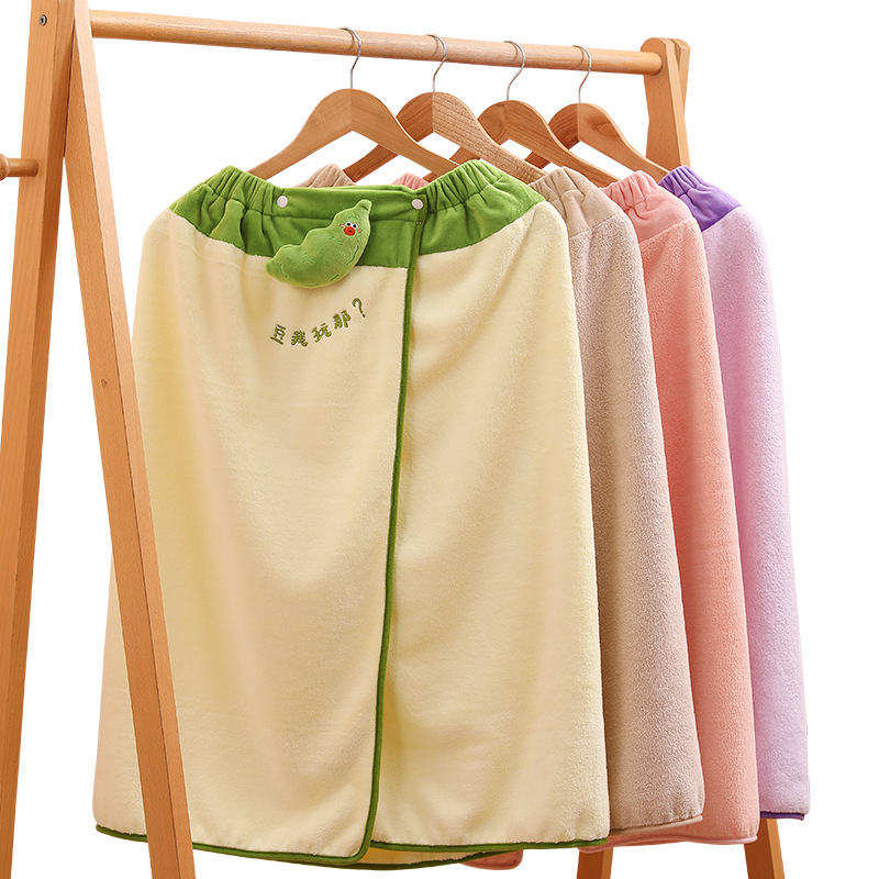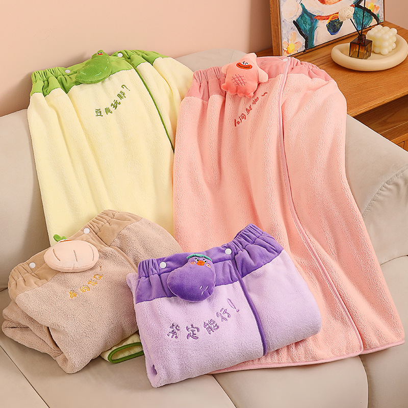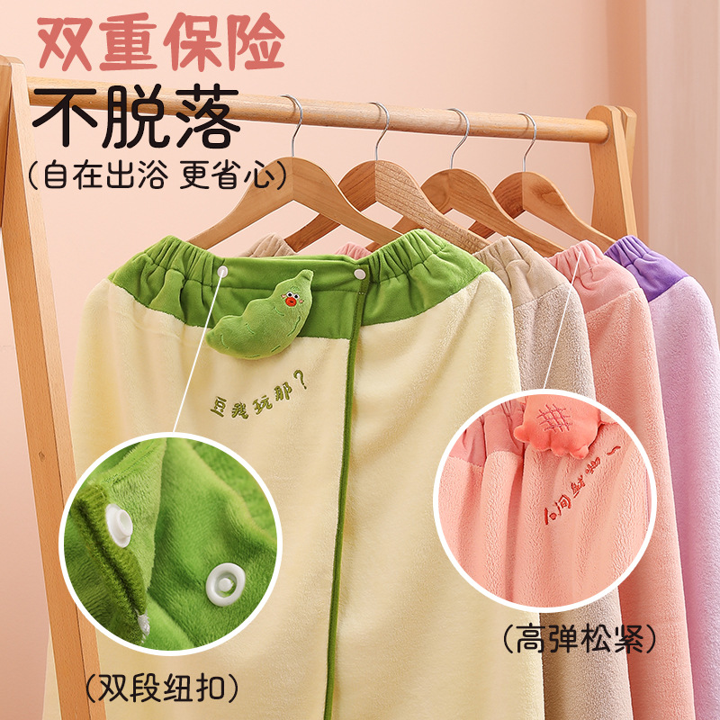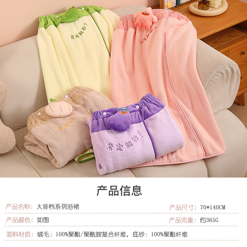 萌趣大排档珊瑚绒包边浴巾家用吸水浴裙速干不掉毛浴袍家用裹巾