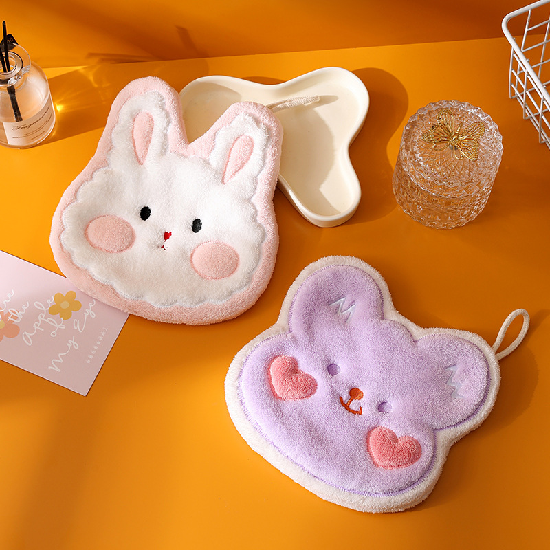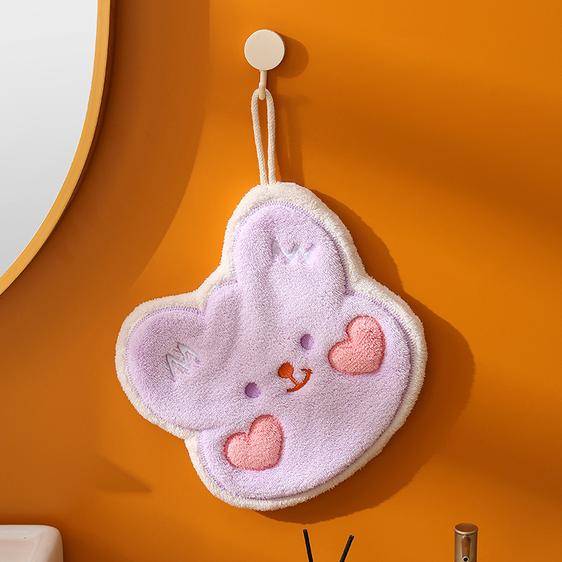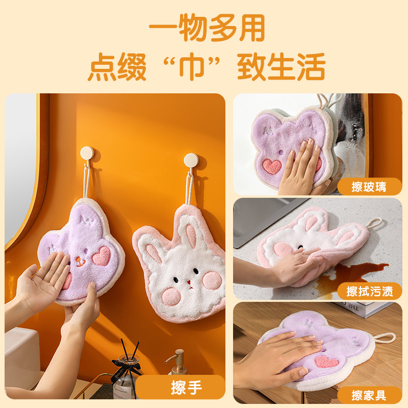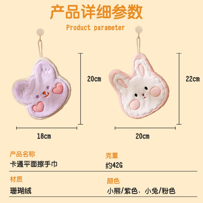珊瑚绒小熊伯恩擦手巾浴室挂式吸水毛巾厨房浴室两用方巾
