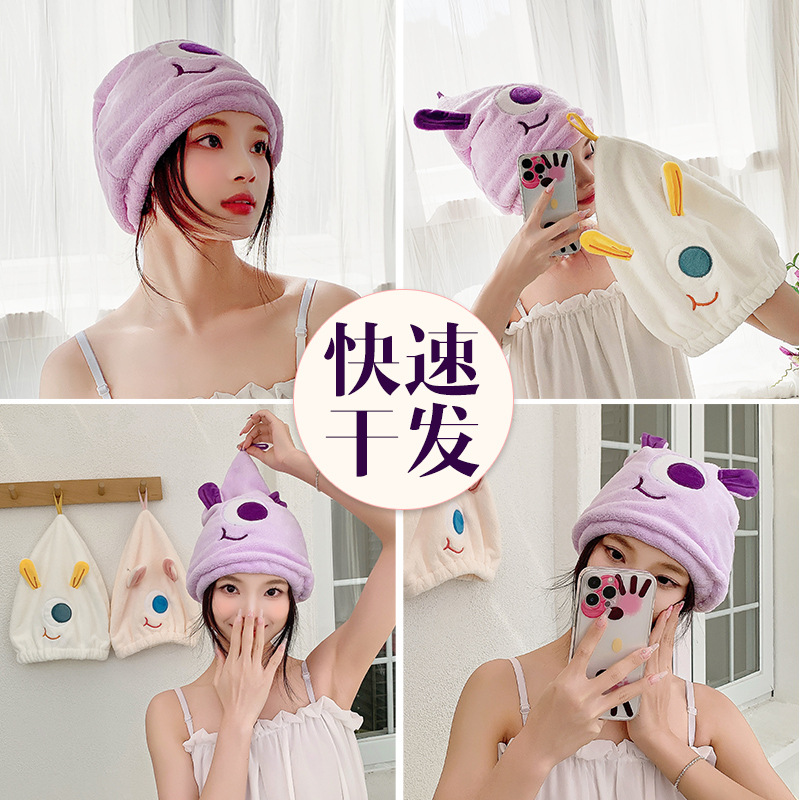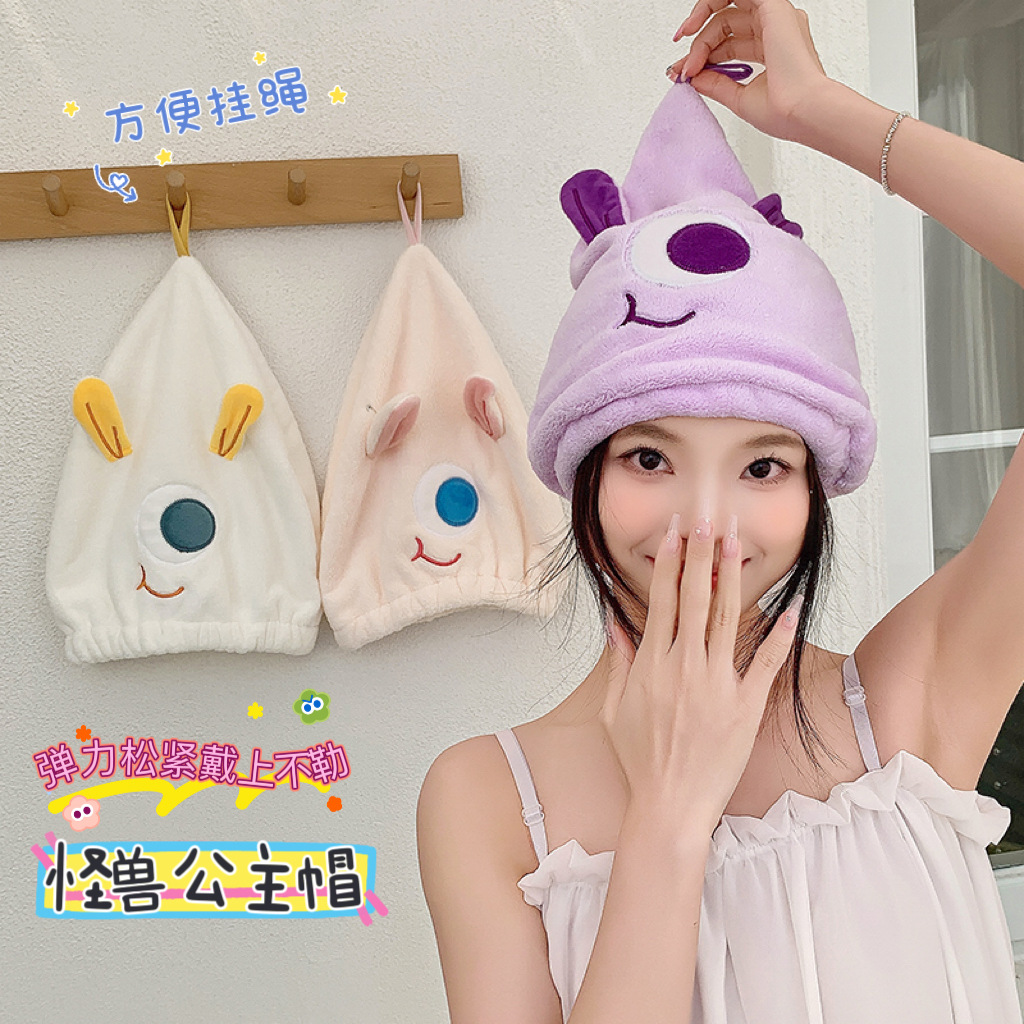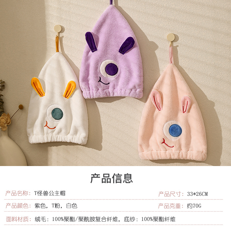 搞怪少女珊瑚绒绣花公主帽吸水速干干发帽洗脸卸妆加厚干发巾