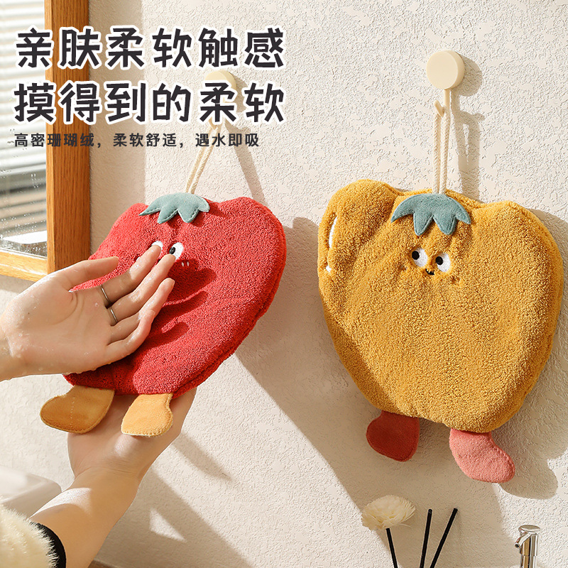 多巴胺蔬菜系列擦手巾吸水珊瑚绒方巾厨房浴室两用挂式毛巾