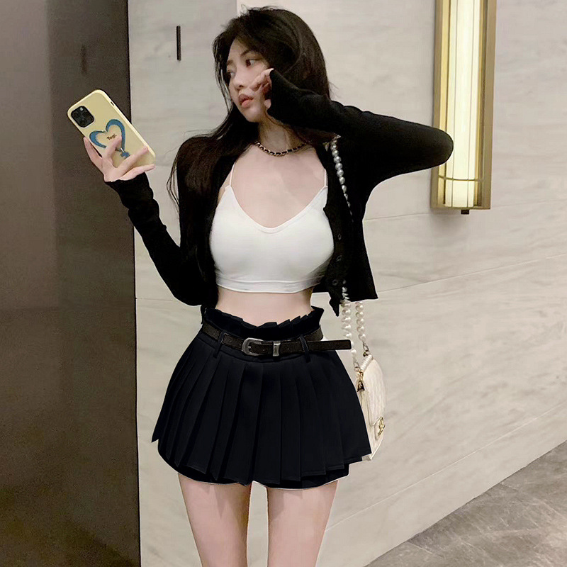 白色芭蕾风半身裙女夏季性感裙裤百褶短裙小个子辣妹高腰A字裙子