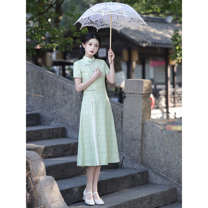 绿色旗袍2025年新款新中式连衣裙改良年轻款少女夏季奥黛国风女装