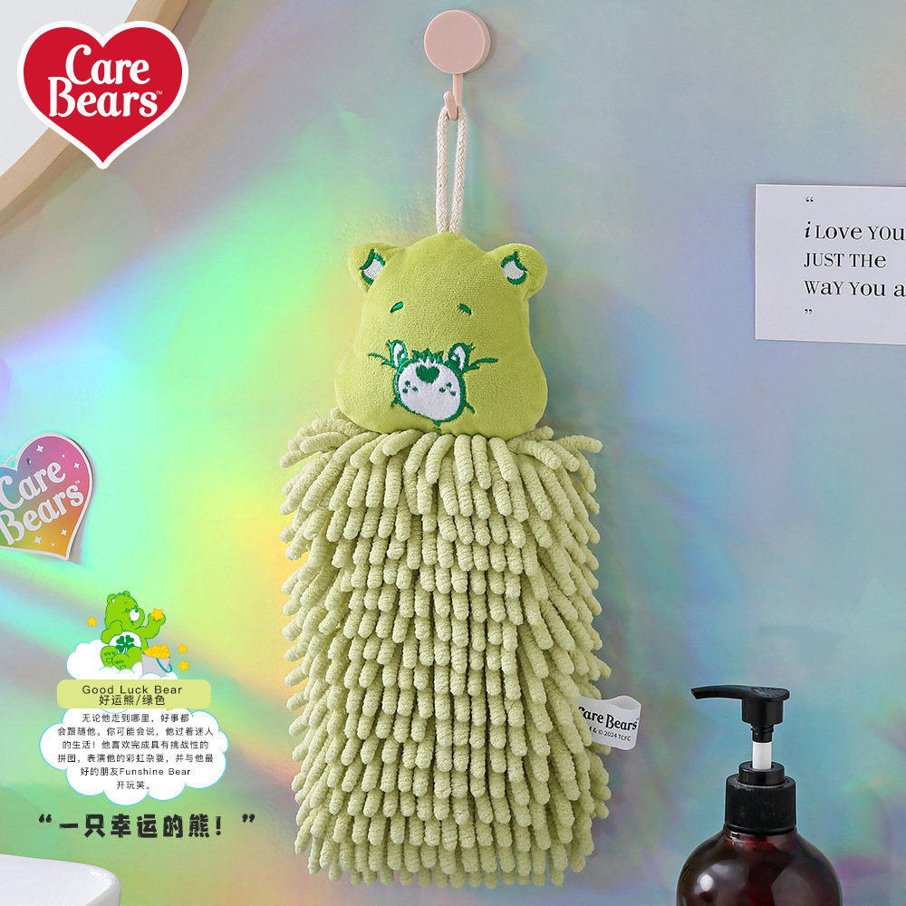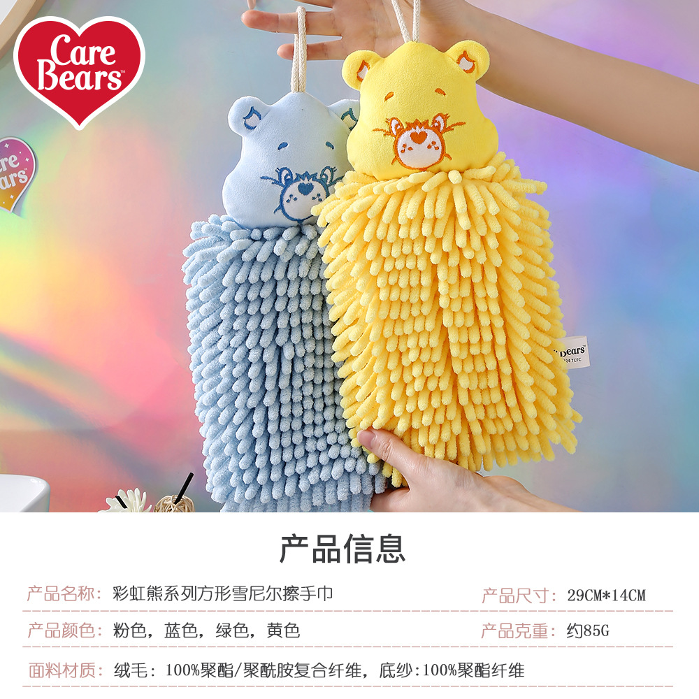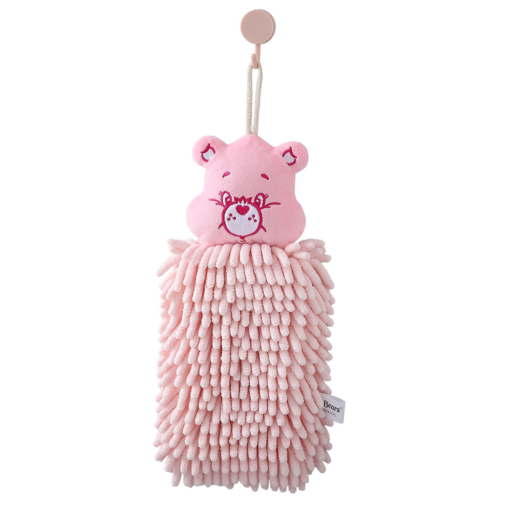 爱心小熊方形雪尼尔擦手巾厨房挂式吸水速干方巾两用