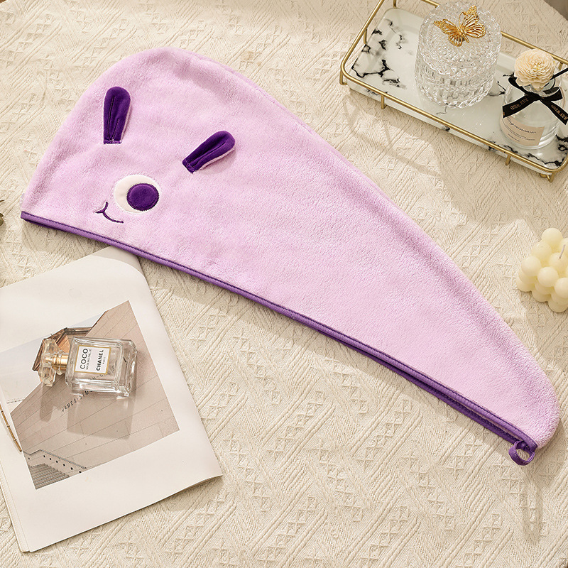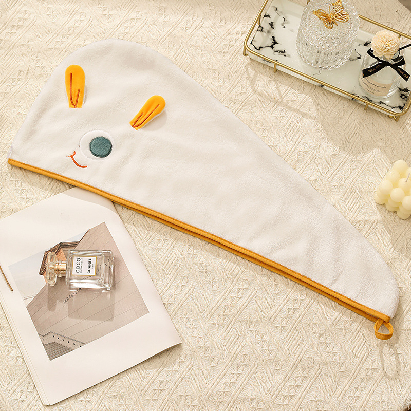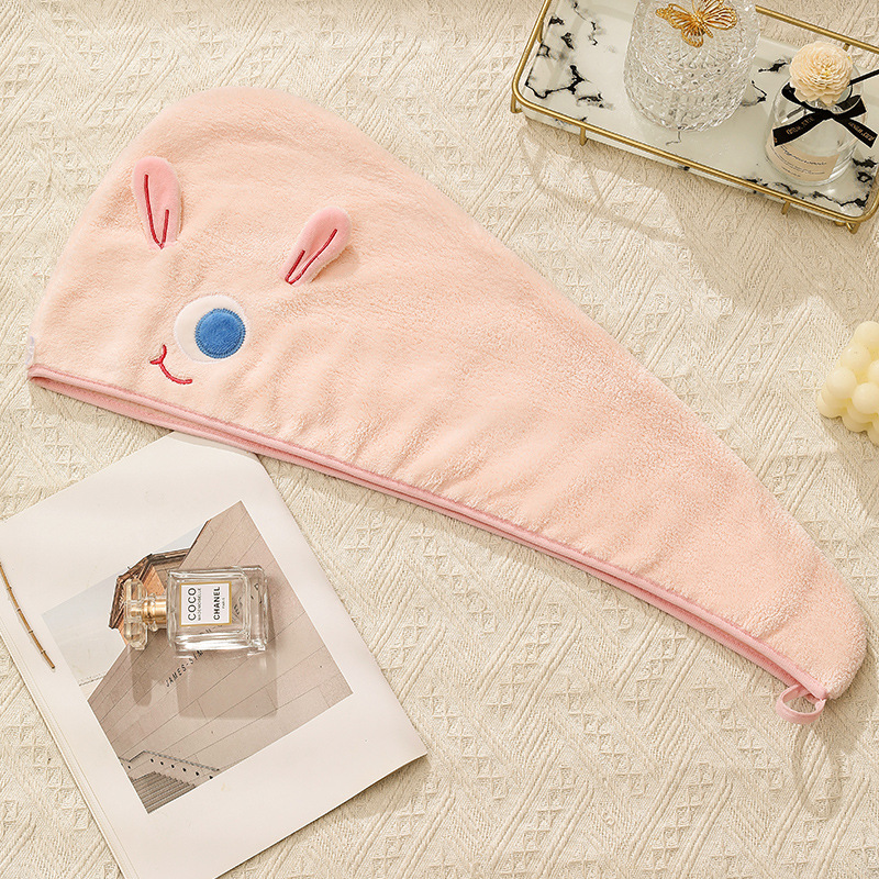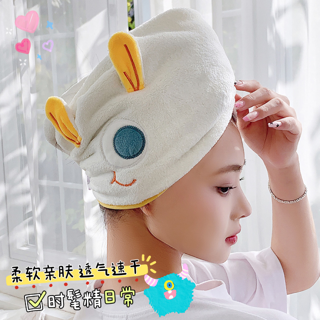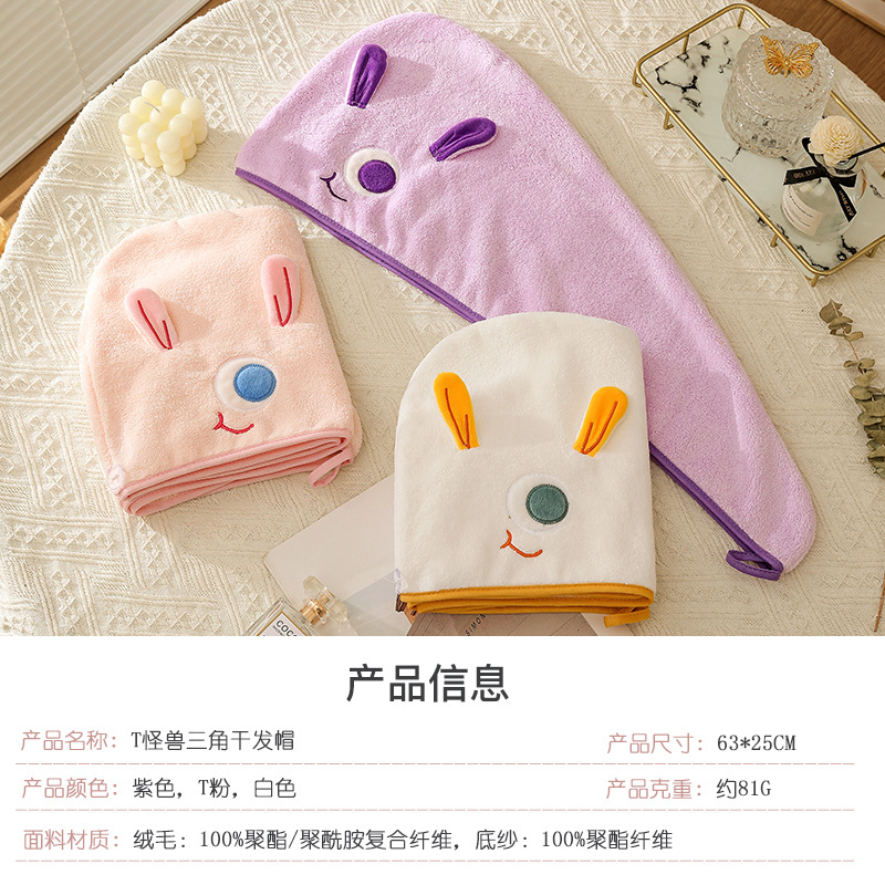 T怪兽珊瑚绒三角包边干发帽绣花加厚干发巾吸水速干浴帽