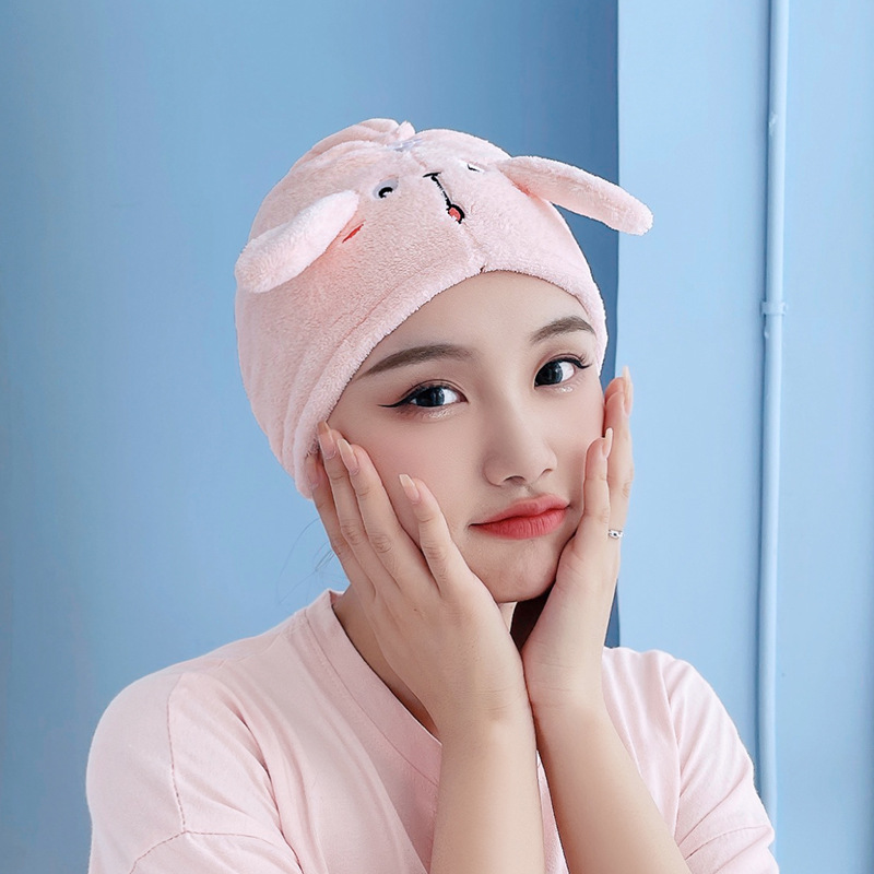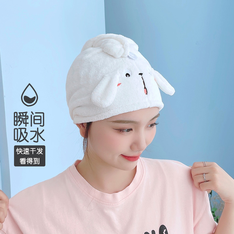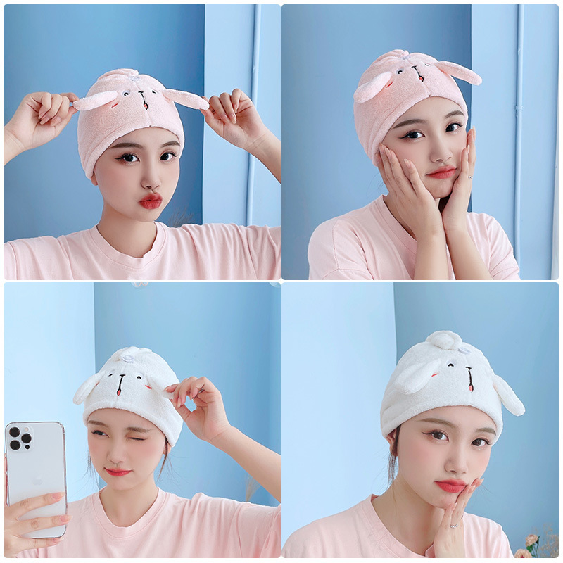 ins风卡通越狱兔耳朵三角干发帽洗脸头带女珊瑚绒吸水浴帽防脱