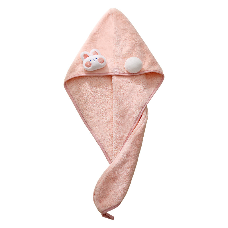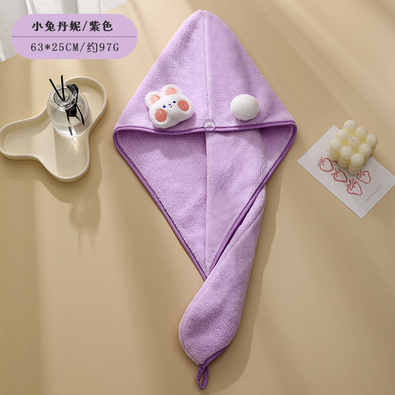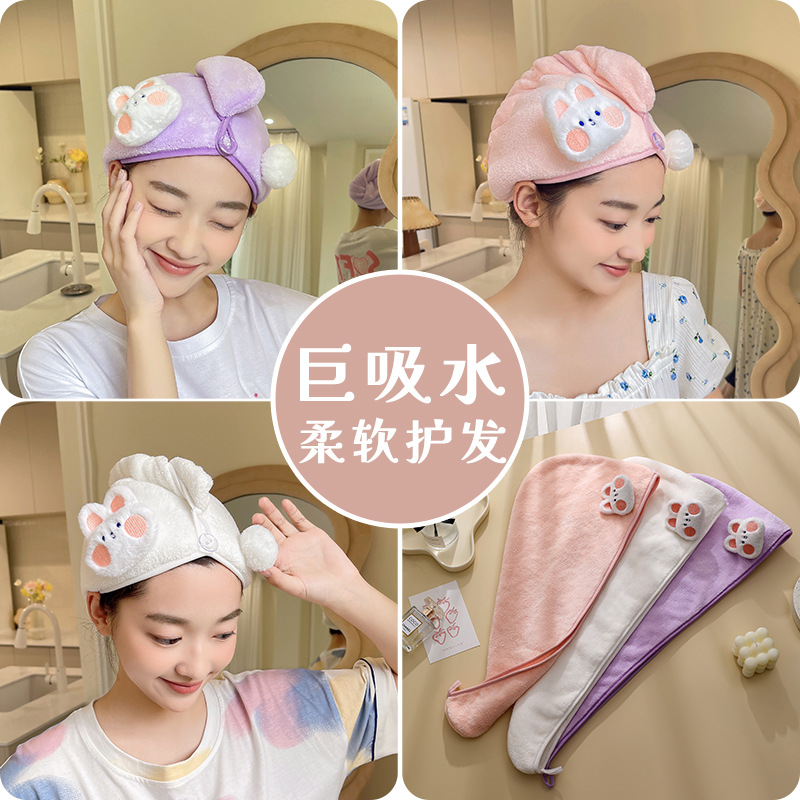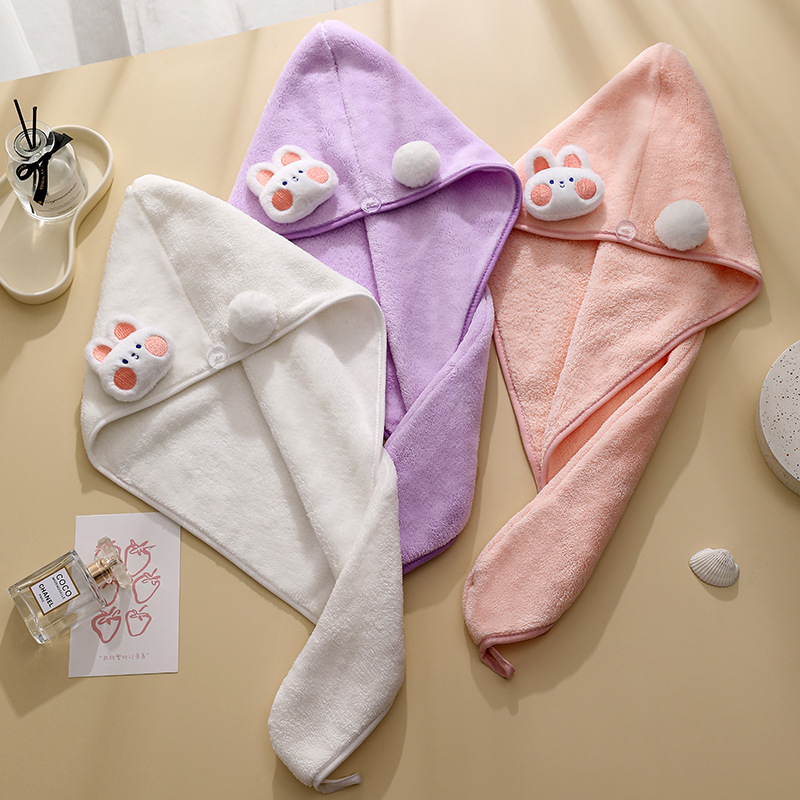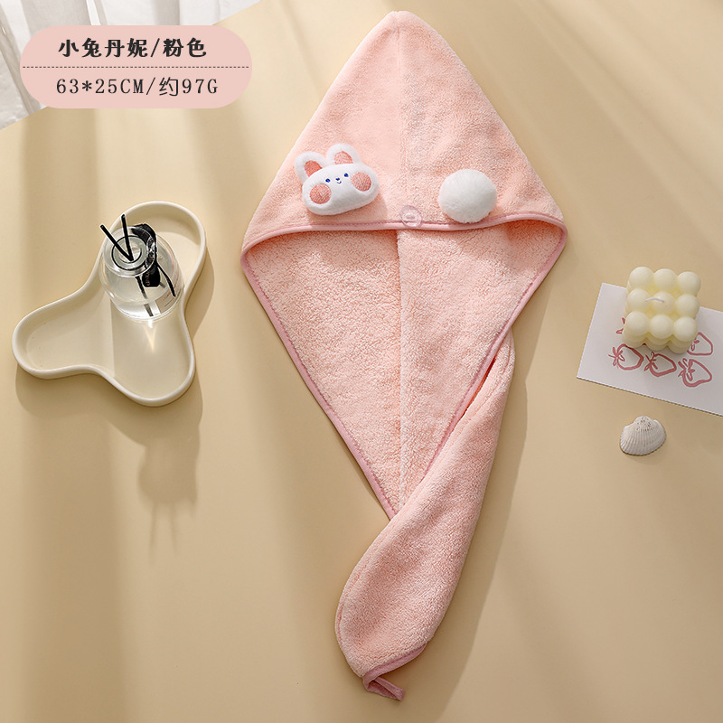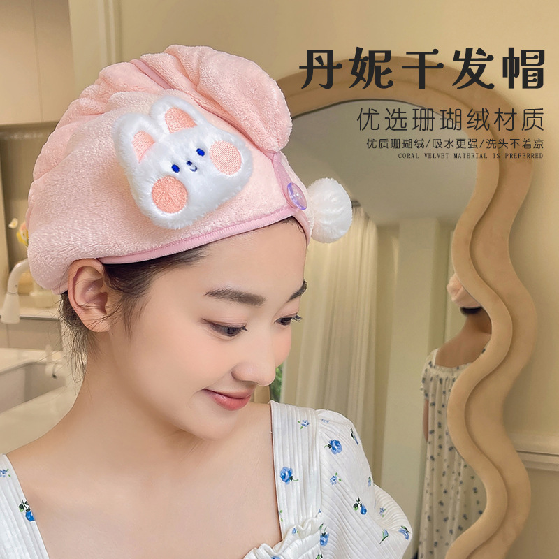 日韩卡通兔子绣花干发帽加厚三角巾浴帽珊瑚绒吸水干发巾