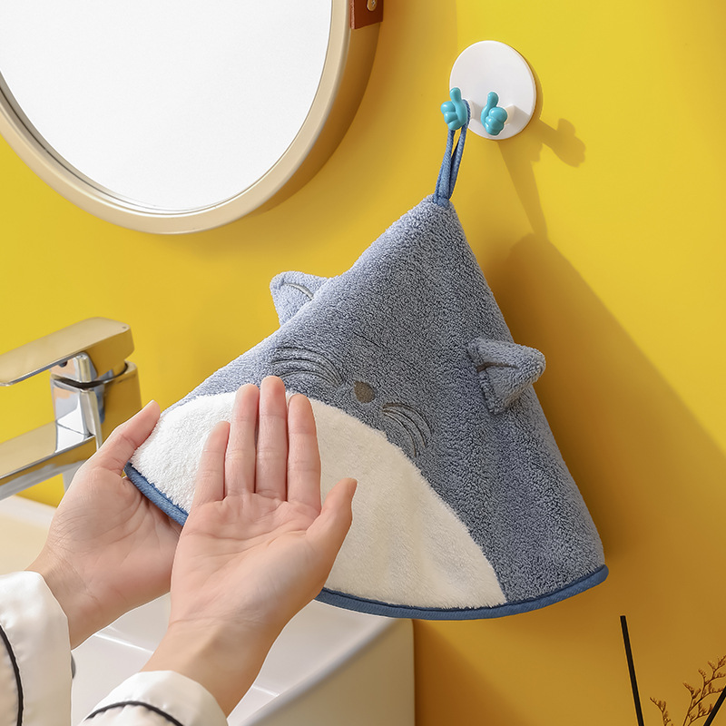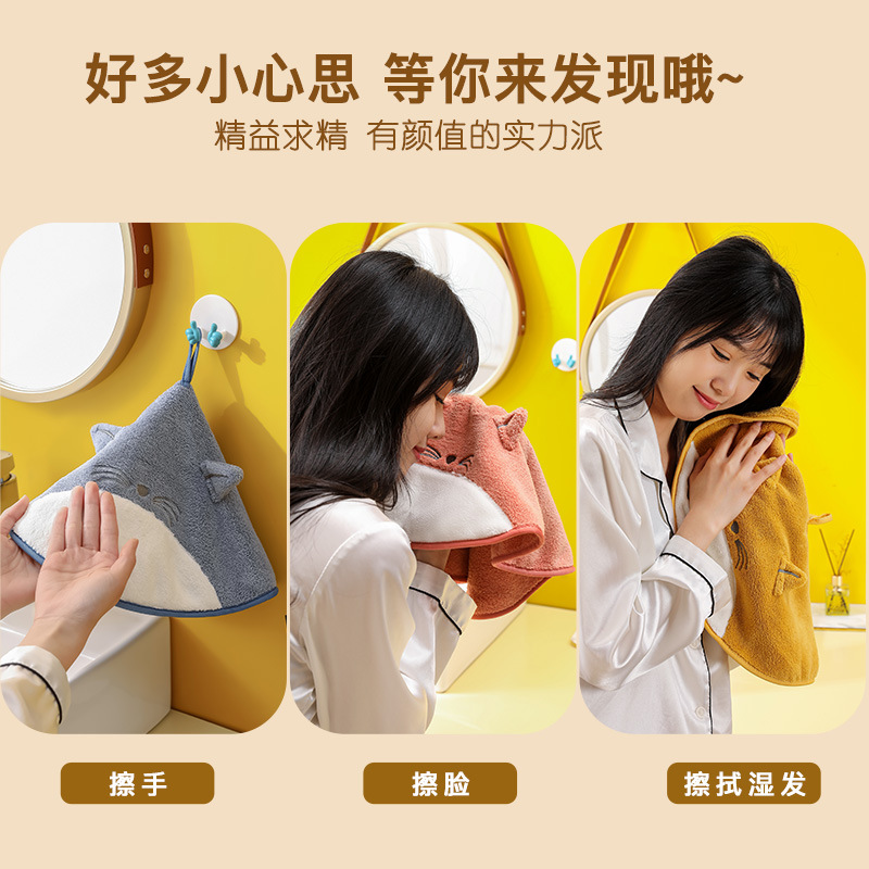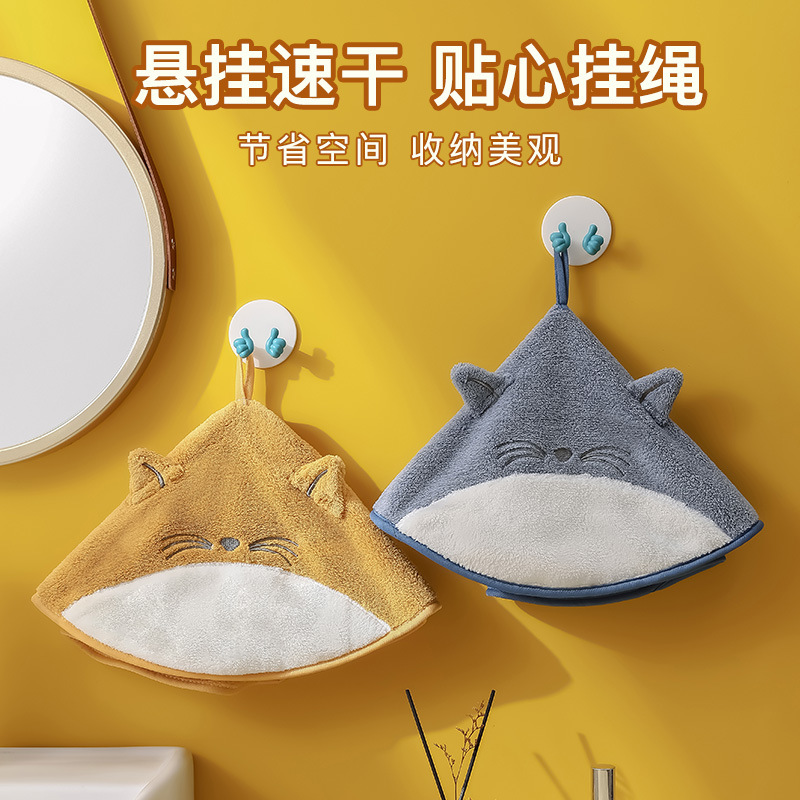 可爱动物艾米猫擦手巾厨房挂式珊瑚绒吸水毛巾浴室两用洗脸巾跨境