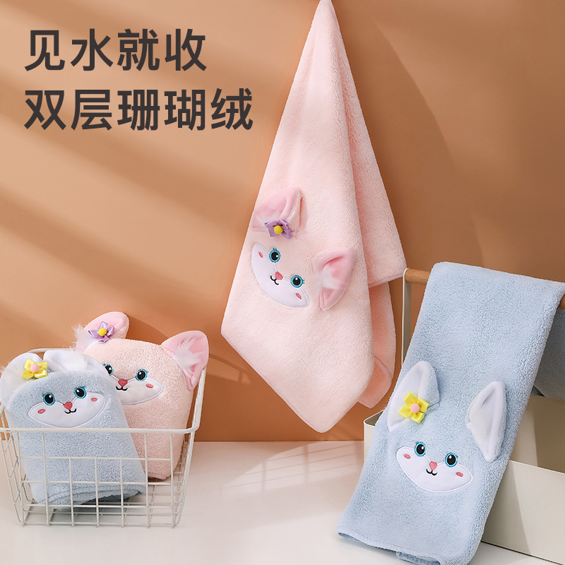 贝尔狐狸毛巾珊瑚绒吸水方巾 喜铺婚庆小熊伴手礼儿童洗澡巾