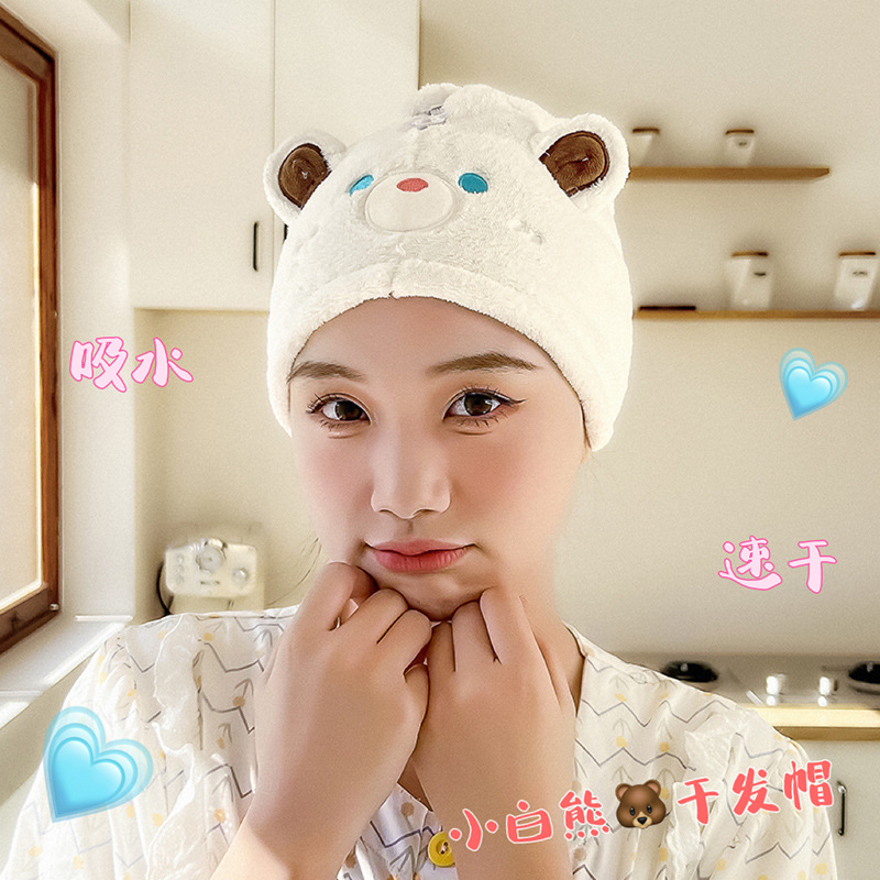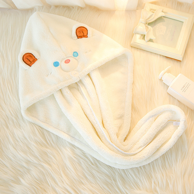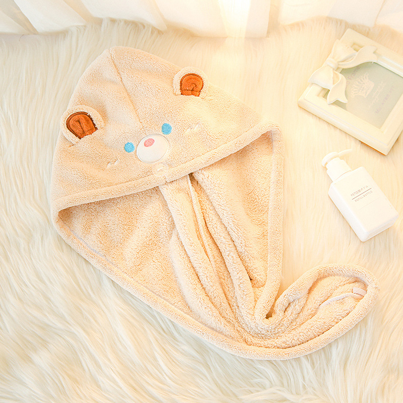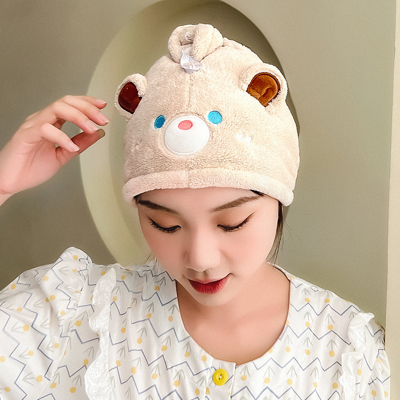 卡通小熊伯特珊瑚绒干发帽微米纱浴帽女吸水速干发巾