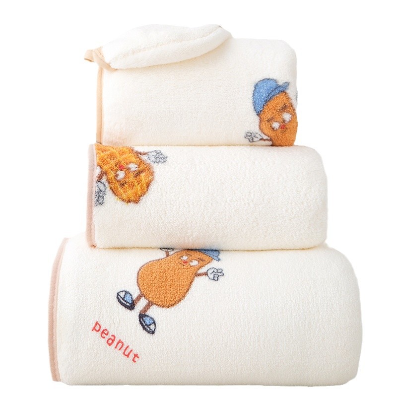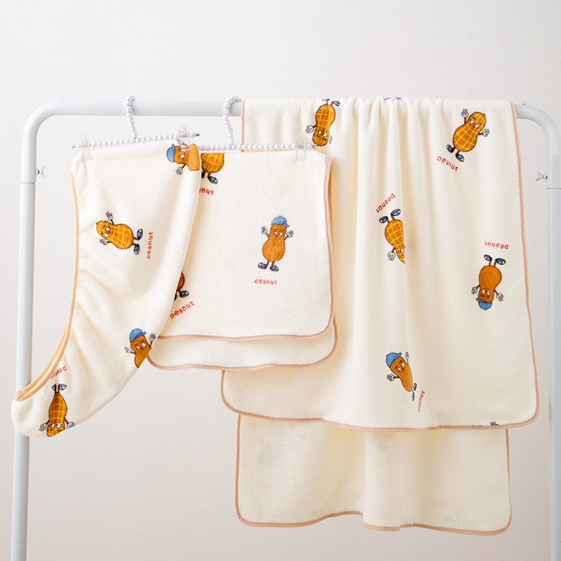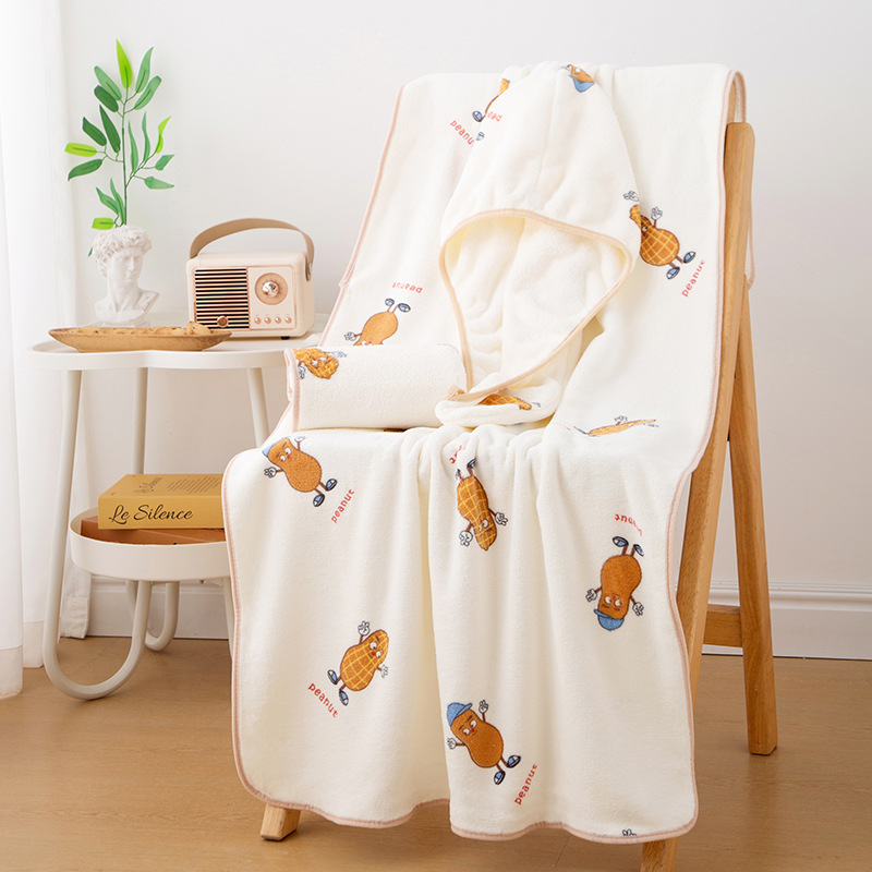 印花花生套巾浴裙浴帽套装成人情侣家用珊瑚绒柔软吸水毛巾