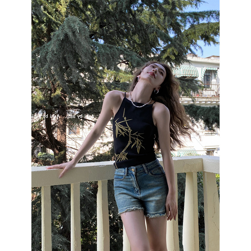 大于诗集新中式复古辣妹国风吊带背心女小众设计感修身显瘦针织衫
