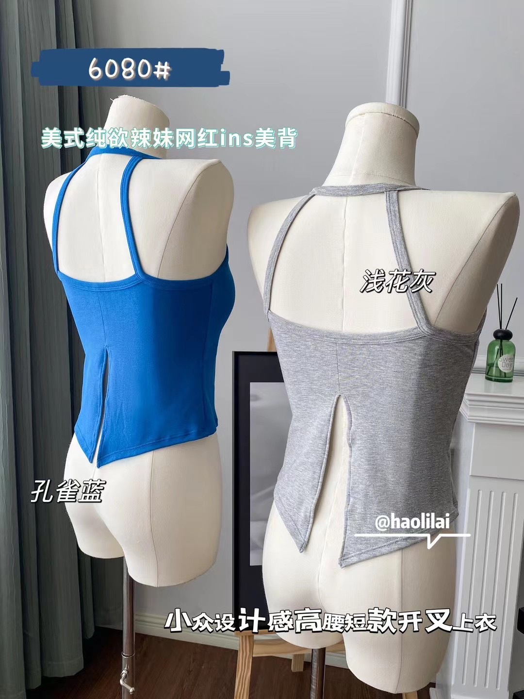 免穿内衣女纯欲辣妹美背女小众设计感短款开叉上衣内搭外穿吊带