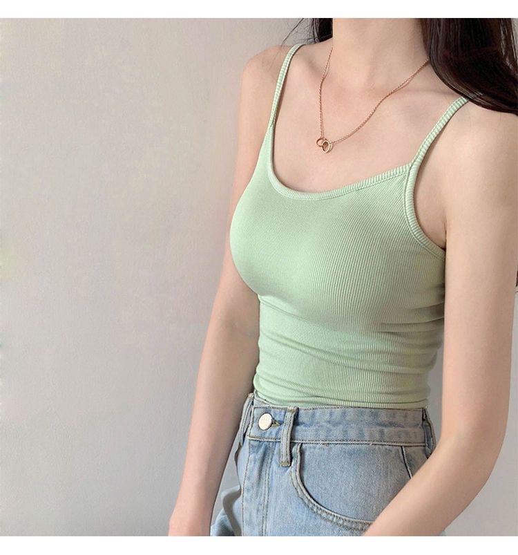 40支背心女夏季外穿内搭短款带胸垫高弹力修身小吊带t恤休闲上衣