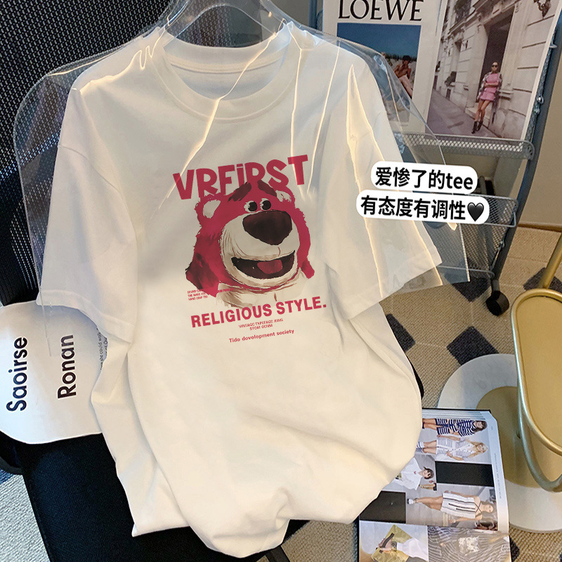 草莓小熊纯棉短袖T恤女韩版宽松中长款新款时尚百搭减龄上衣夏季