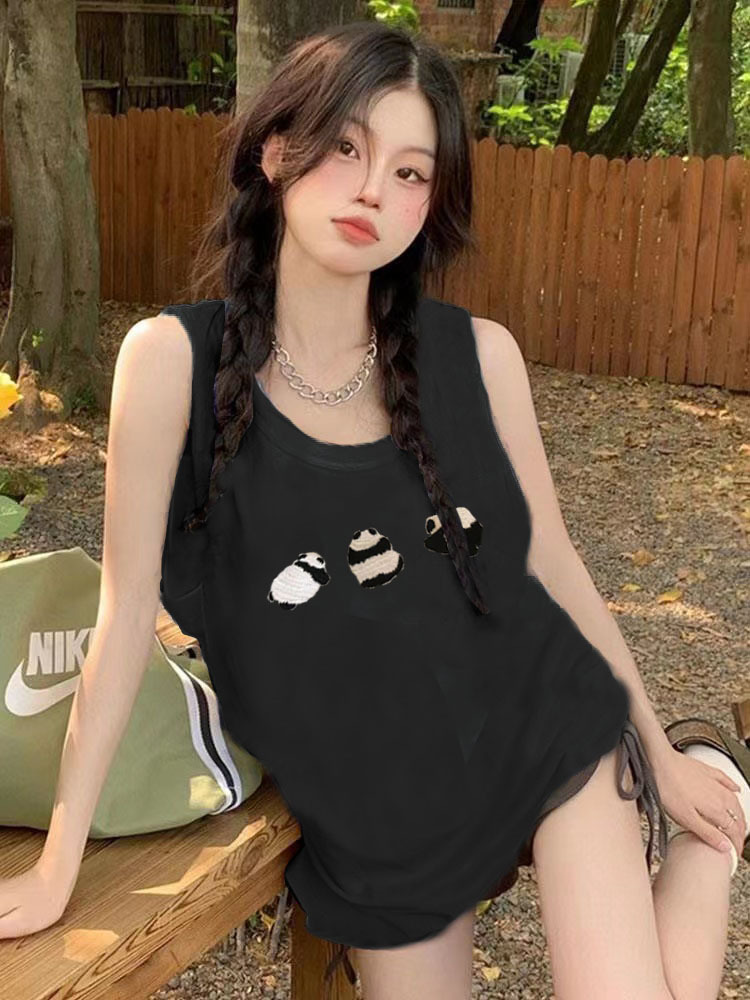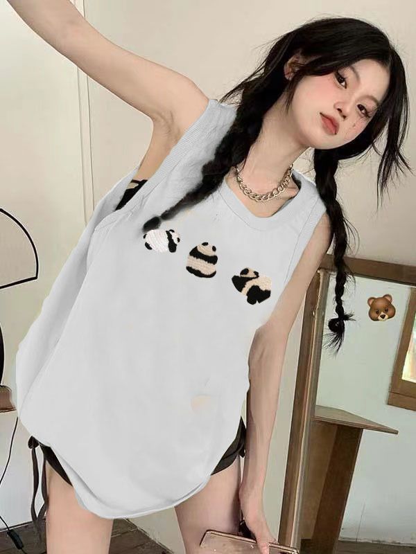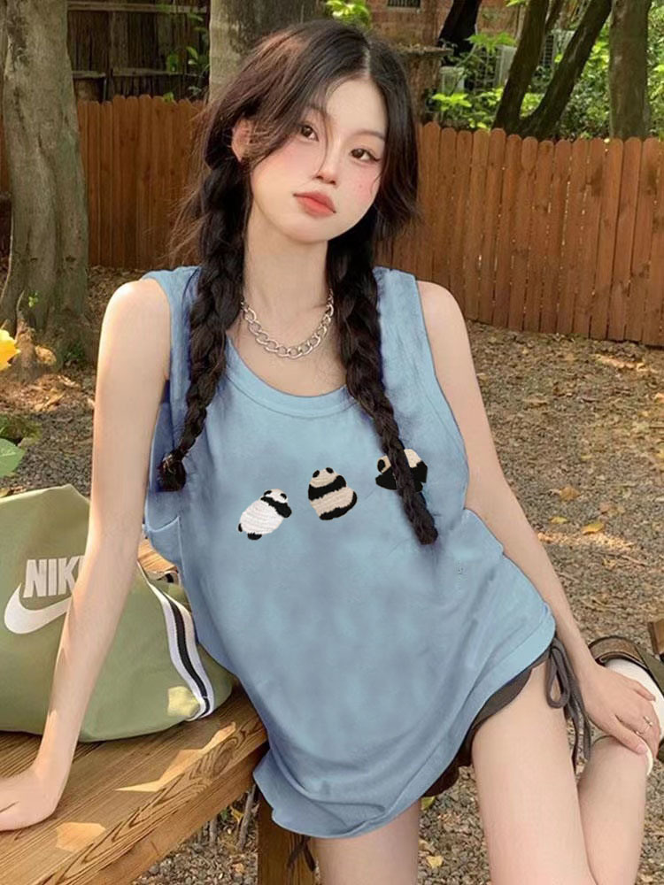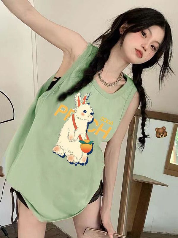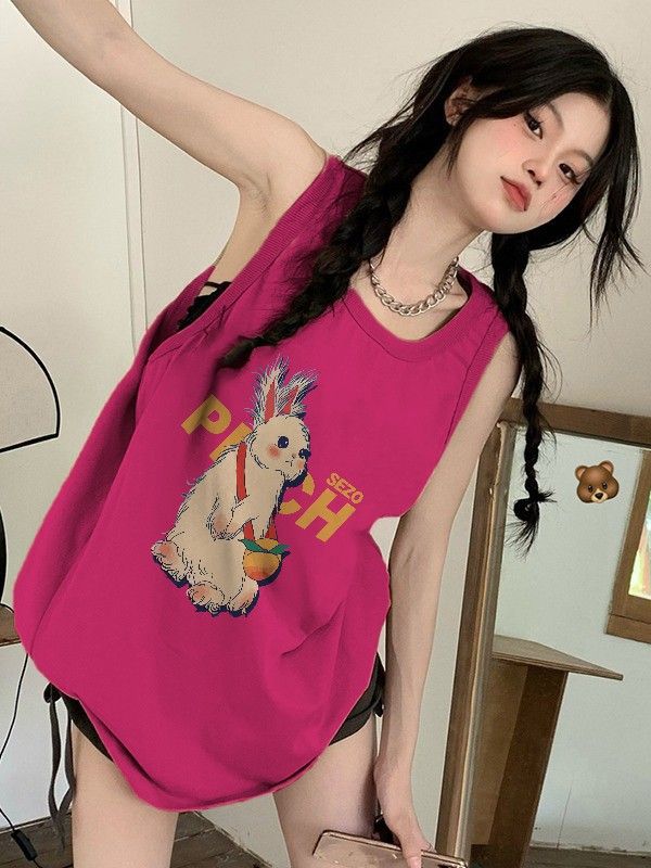 火龙果色坎肩兔子无袖T恤女夏季法式甜辣小背心多巴胺穿搭上衣ins