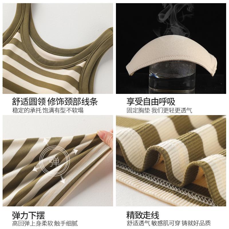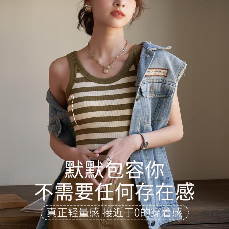 吊带背心女内搭夏带胸垫外穿小众设计感条纹内衣白色无袖打底上衣