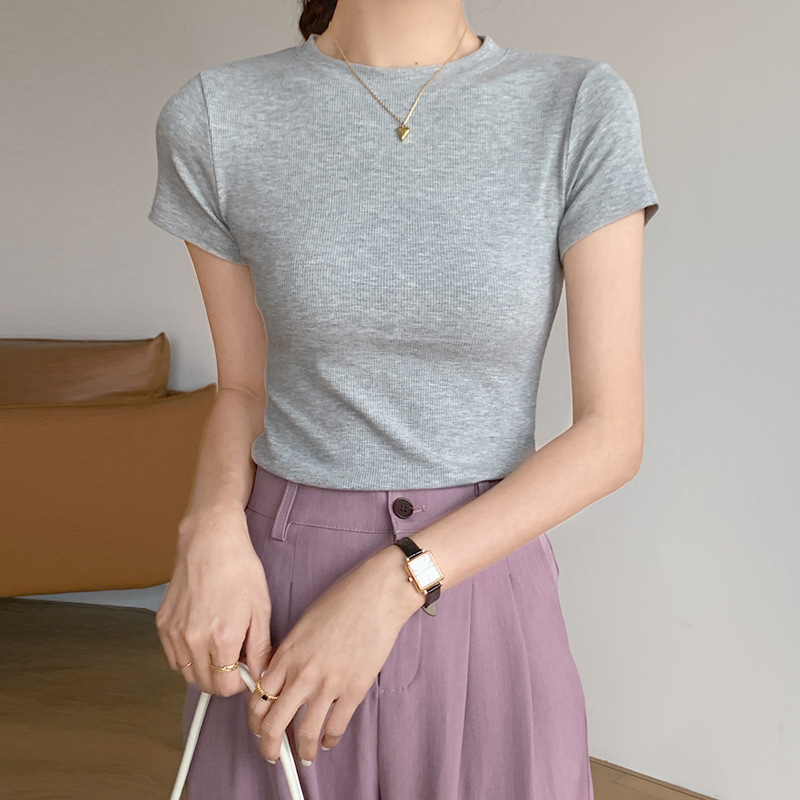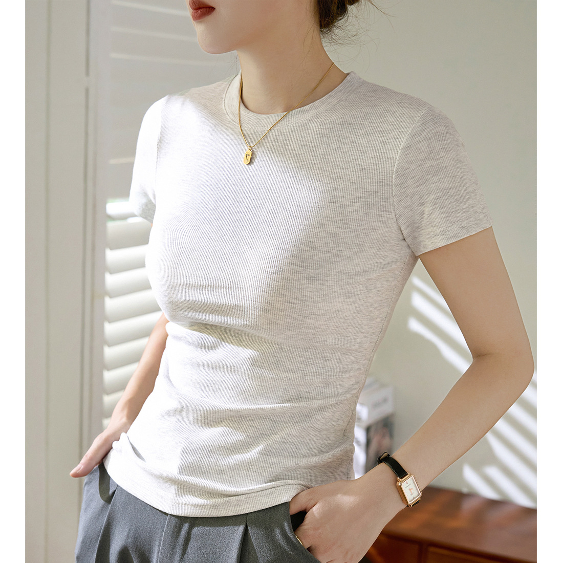 300g高弹螺纹棉t恤女夏短袖2025新款跨境外贸纯棉纯色大码女装潮