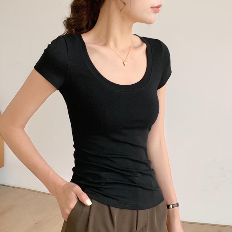 优质纯棉T恤女短袖修身圆领性感紧身2025新款夏装上衣纯色打底衫