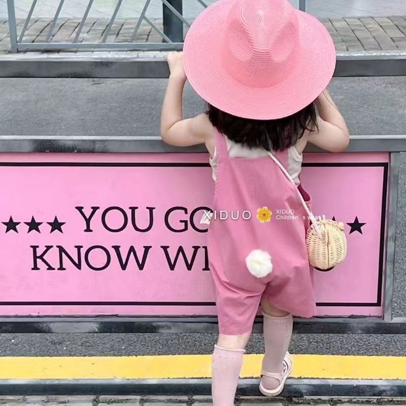 夏季女童背带裤宝宝洋气儿童个性潮牌韩版可爱卡通尾巴连体衣短裤