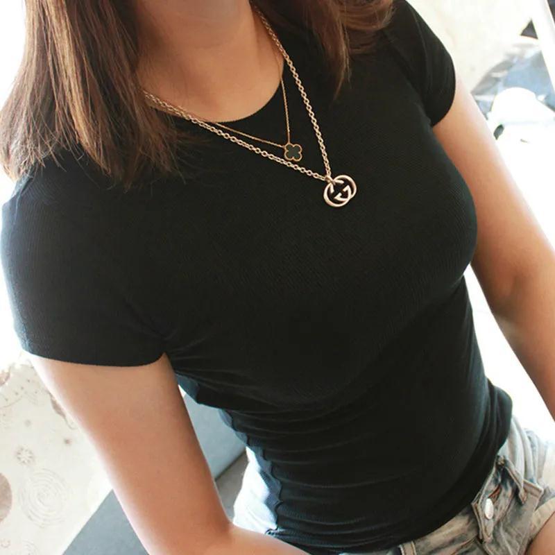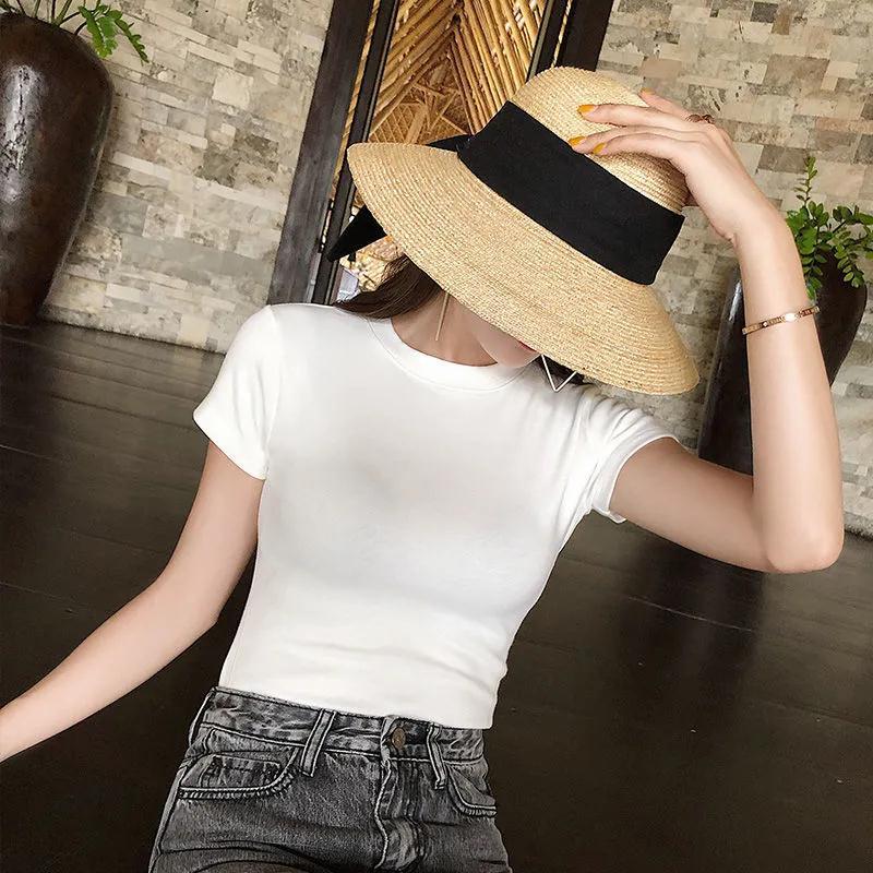 300g跨境外贸t恤女短袖2025新款夏韩版大码高弹性纯色圆领打底衫