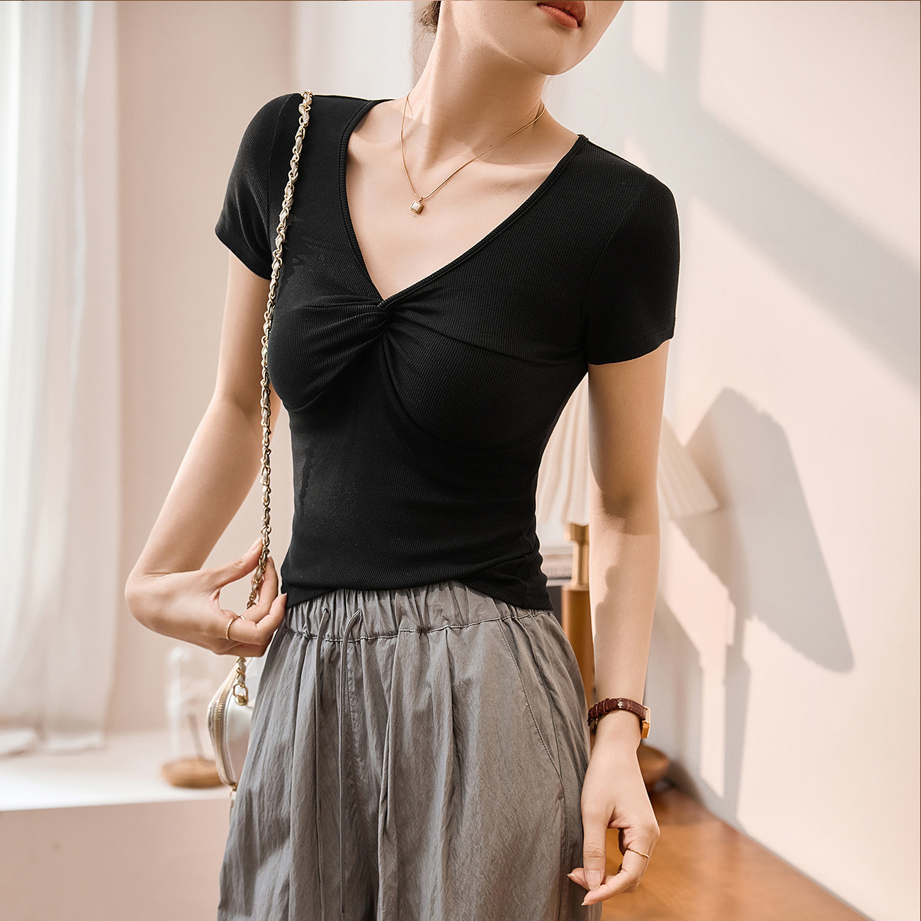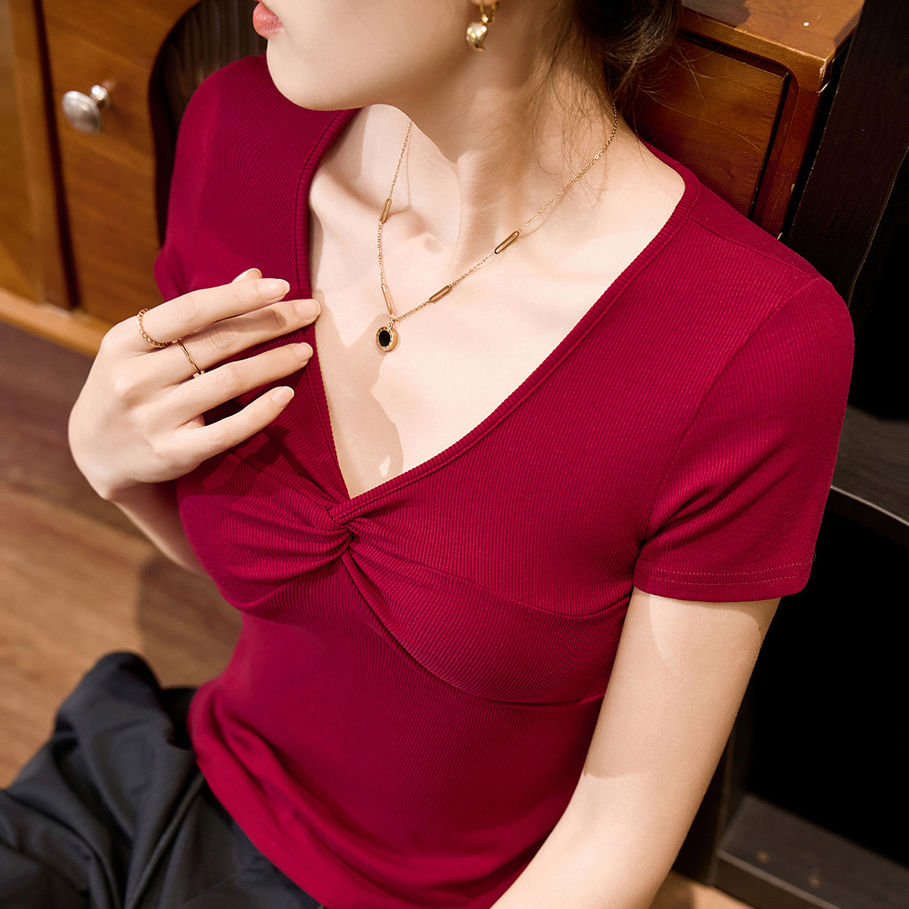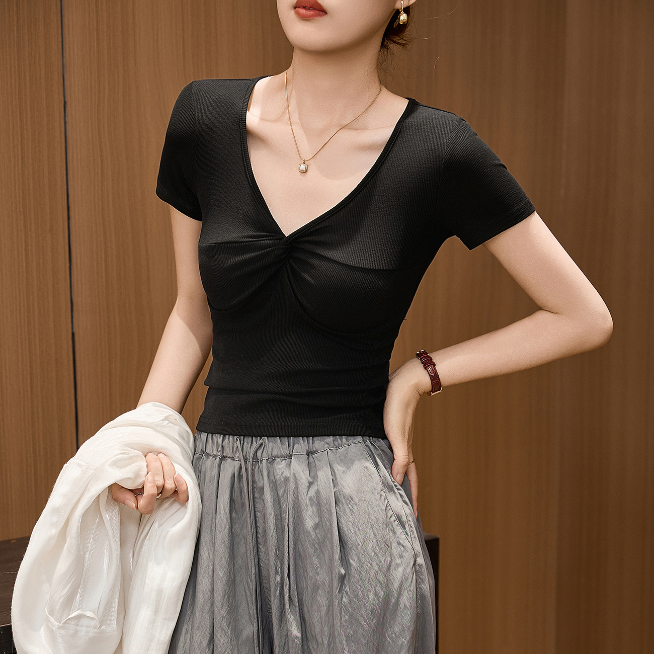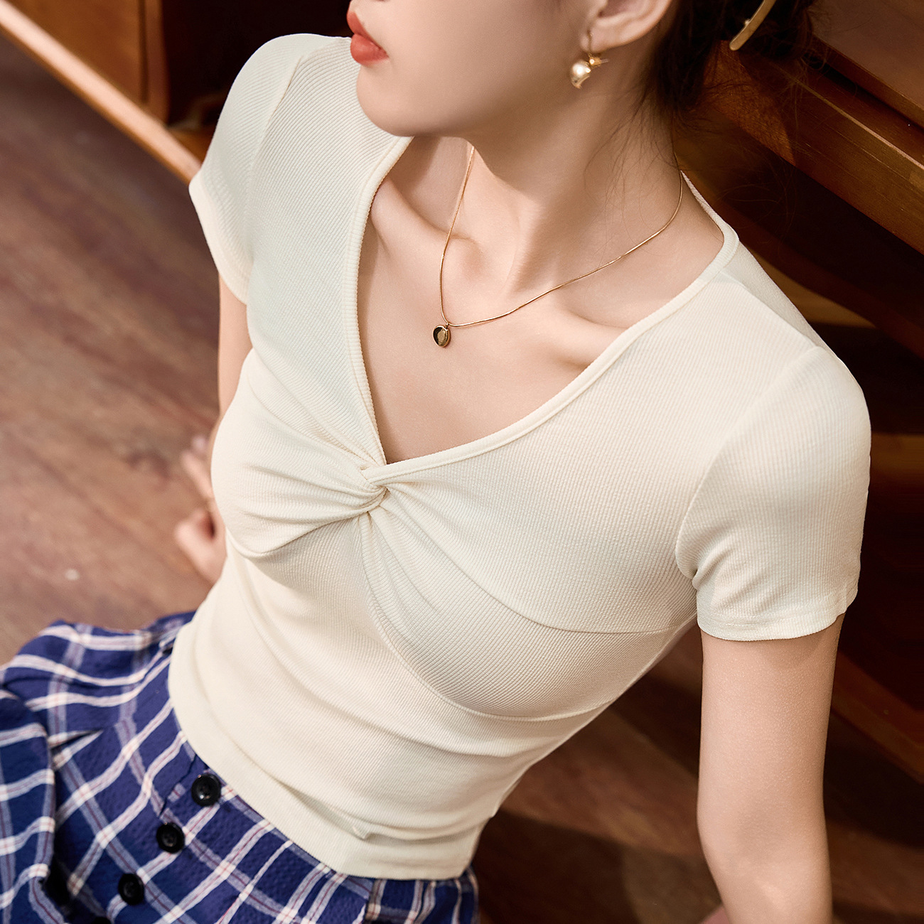 #天丝优可 用好料 甄品质#短袖T恤女高腰短款夏季新款打底衫上衣