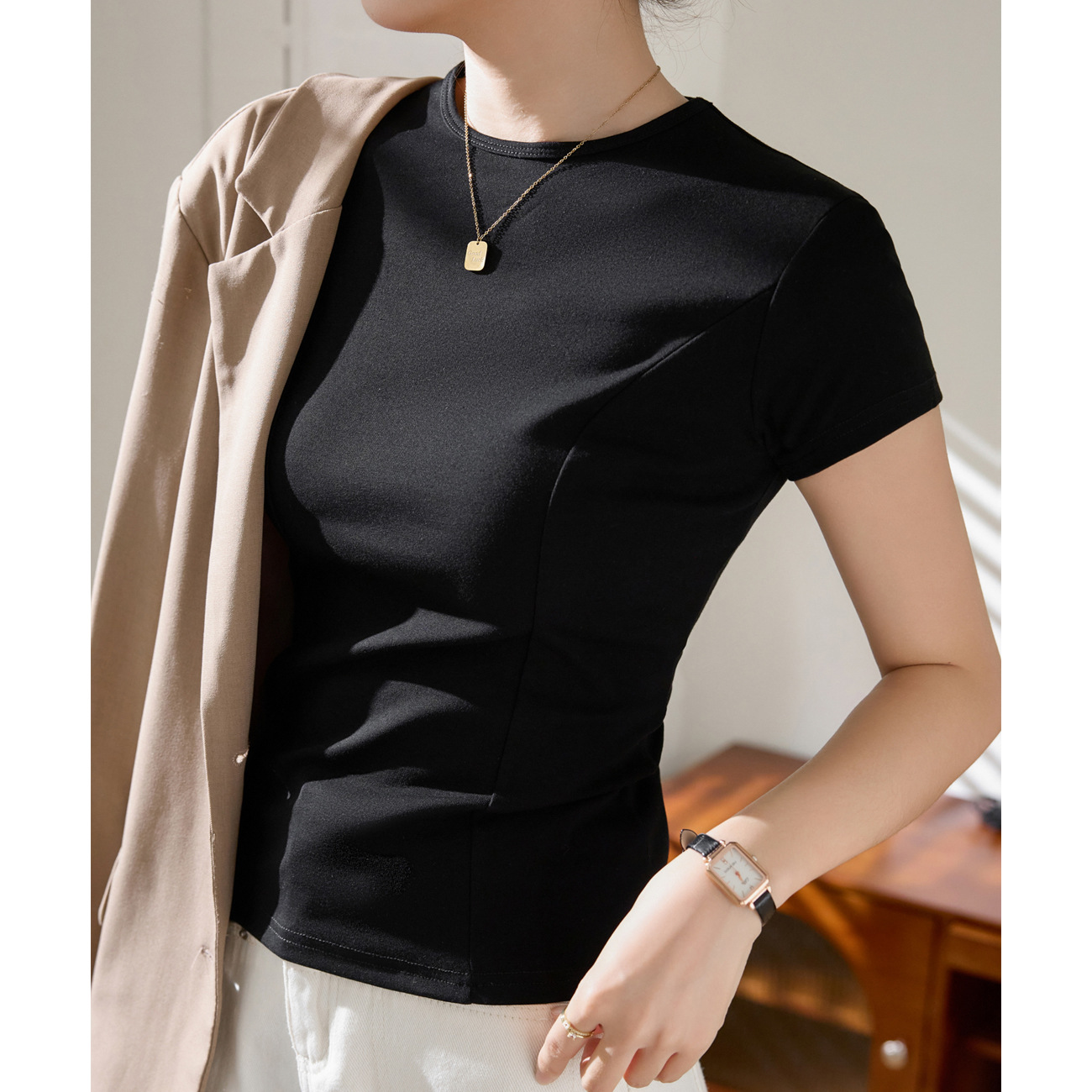 【质做高品】高级设计感纯棉T恤女夏短袖2025新款修身上衣打底衫