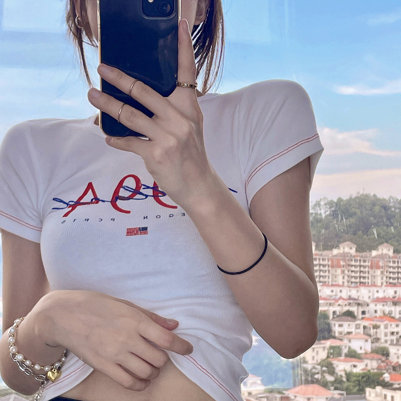 螺纹白色T恤女ins潮紧身短款打底衫夏季新款修身内搭短袖上衣