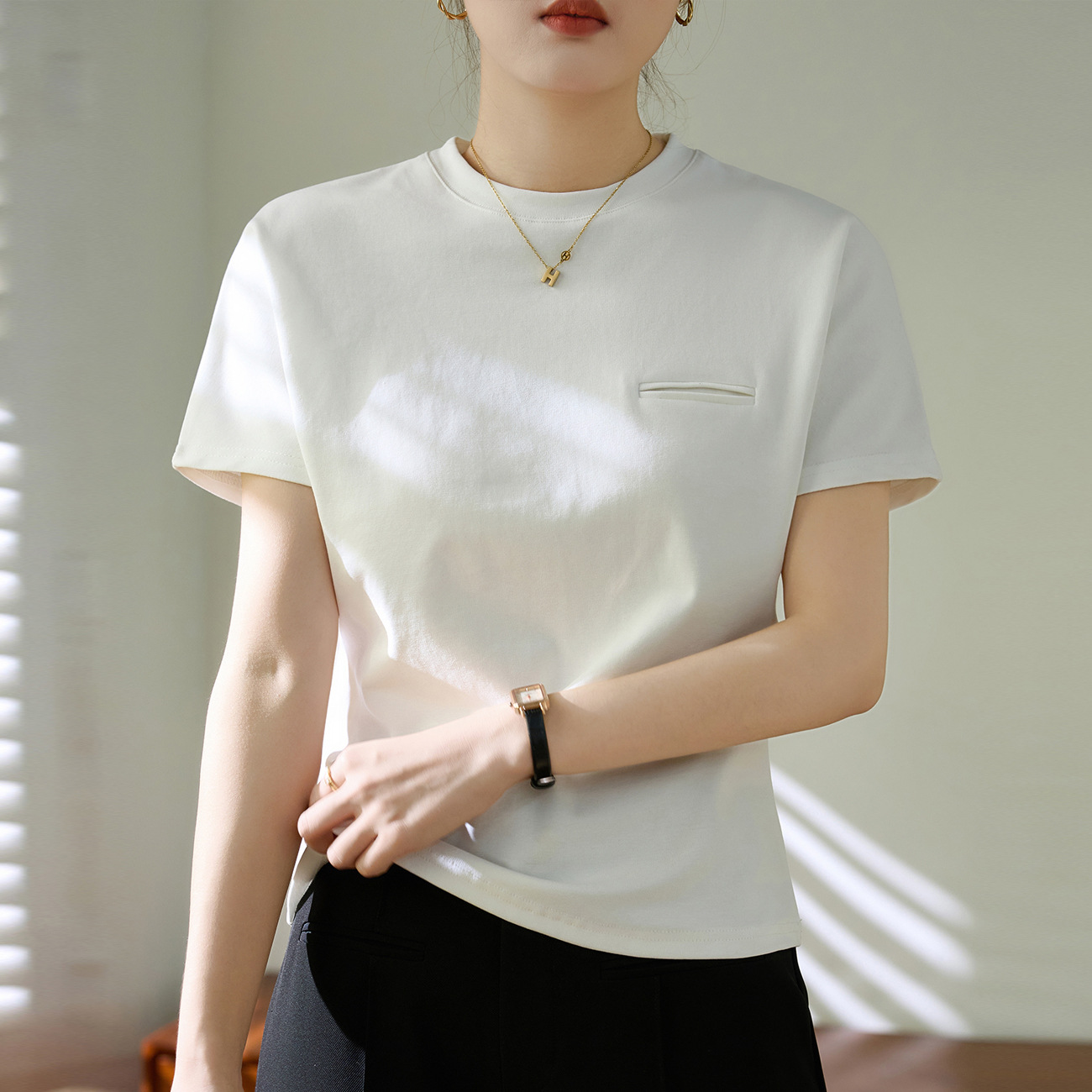 翻领纯欲纯棉轻熟风修身高腰显瘦短款T恤女装短袖辣妹小个子上衣