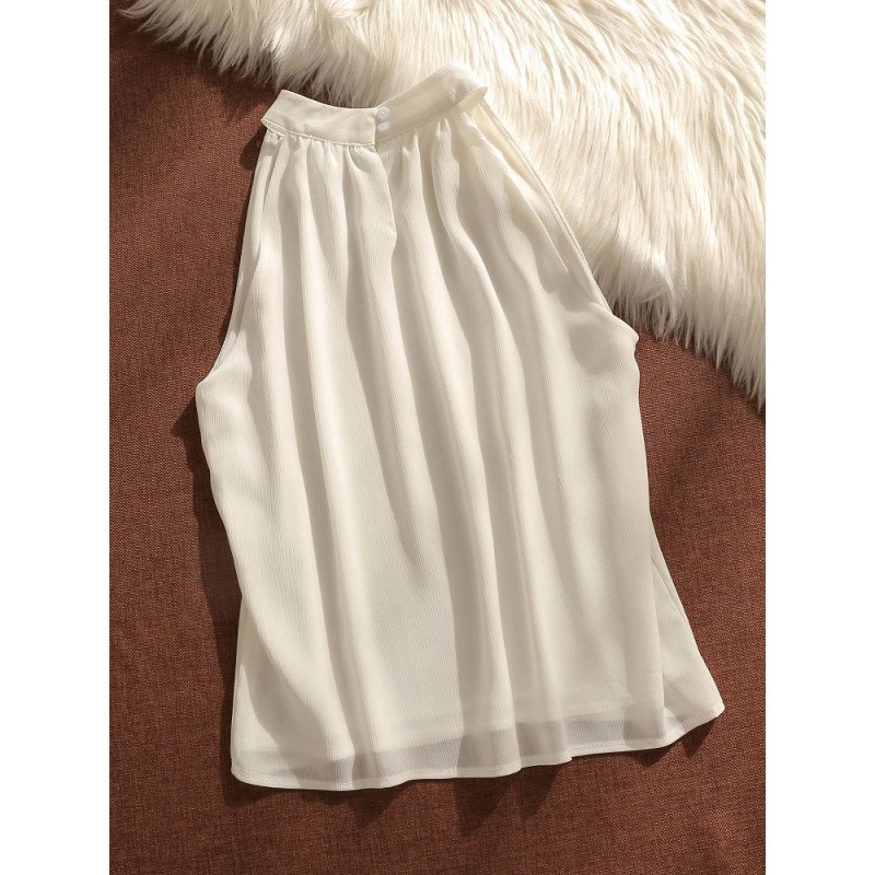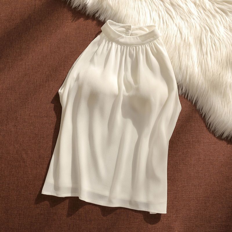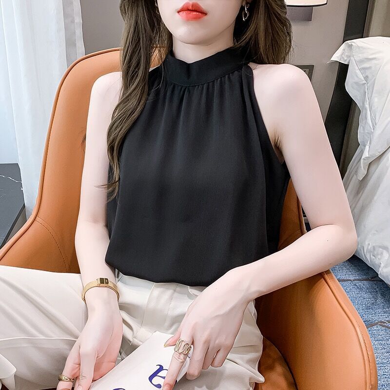 无袖衬衫挂脖上衣女夏外穿雪纺气质宽松设计感露锁骨欲吊带背心