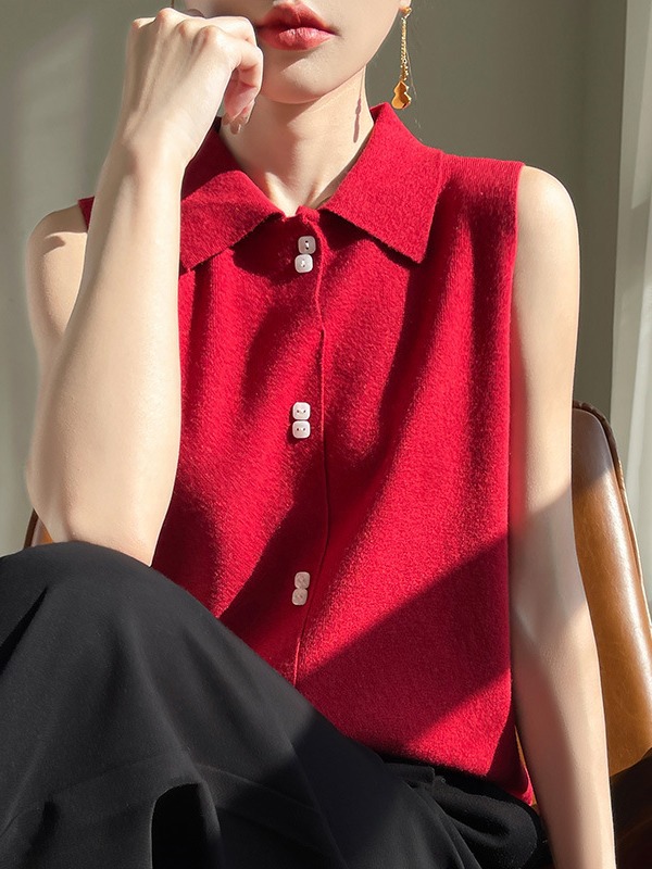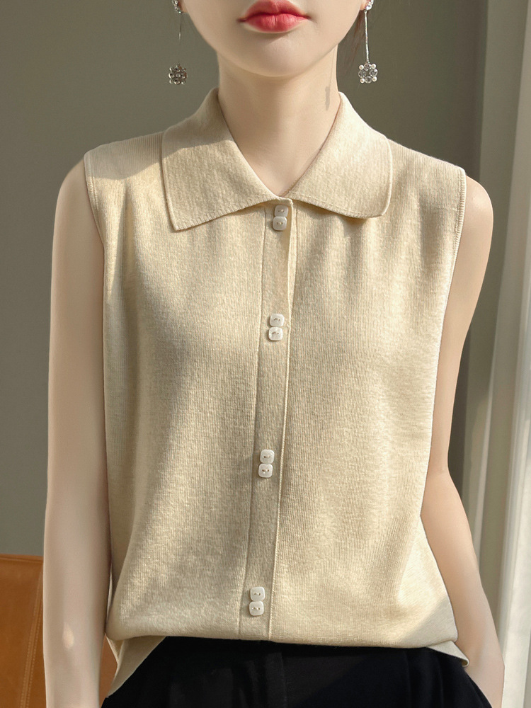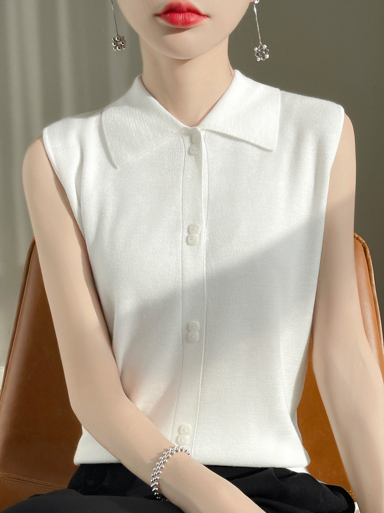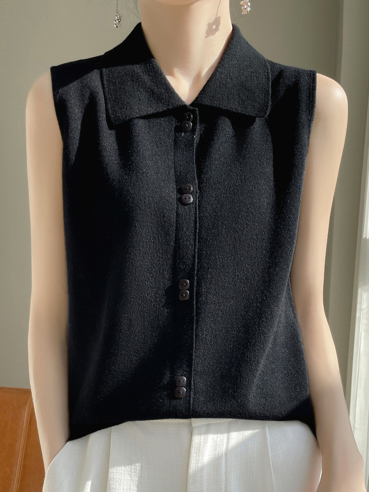 衬衣领无袖背心打底衫女春秋内搭叠穿套头羊毛针织翻领坎肩上衣