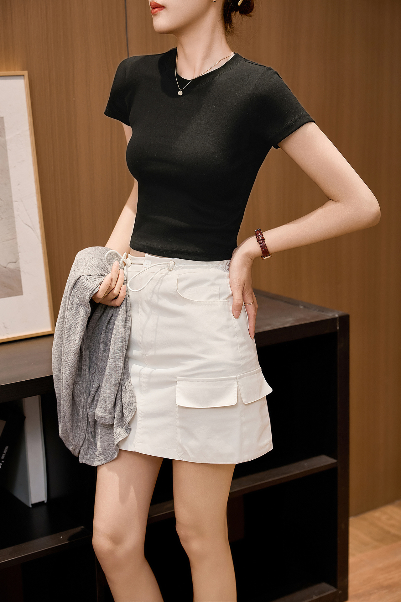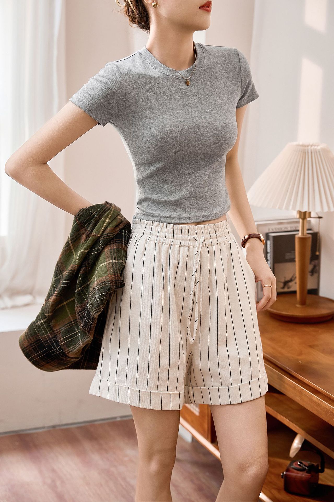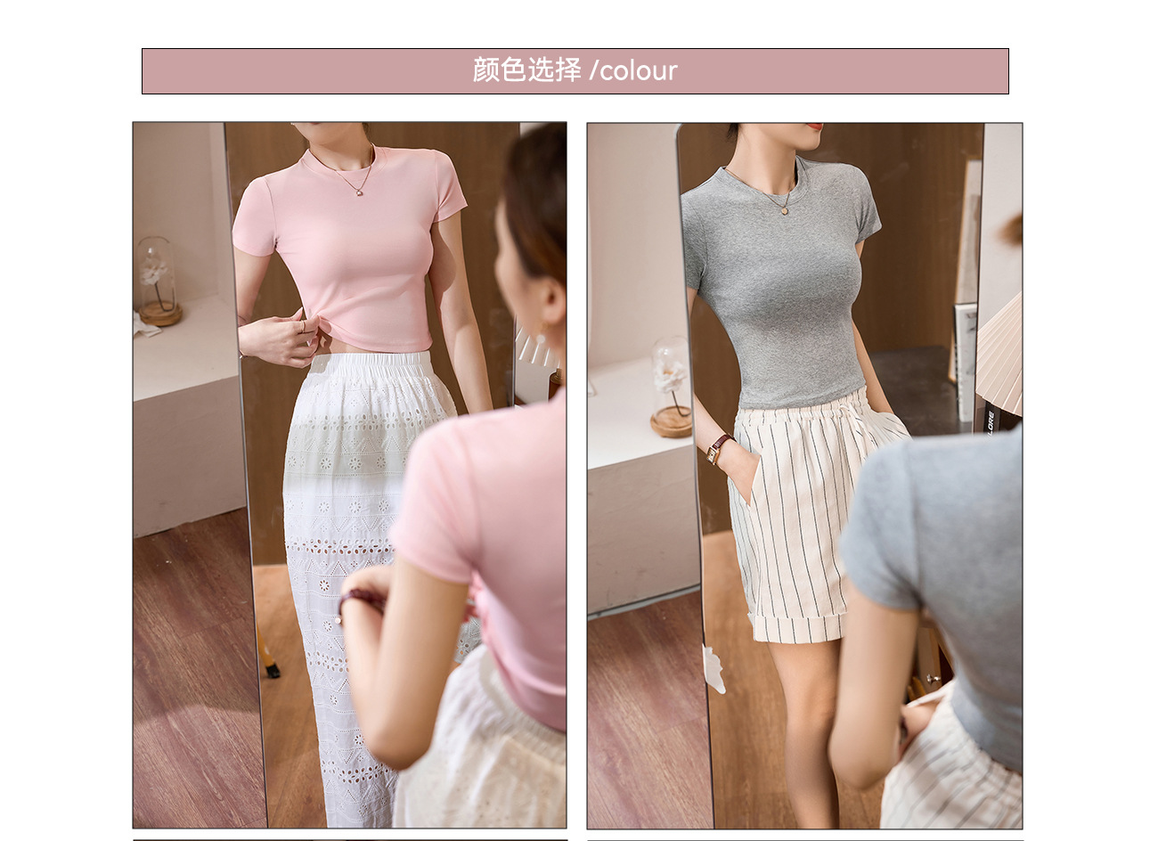 #精梳纯棉# 高腰短款T恤女夏2025新款修身显瘦小个子百搭短袖上衣