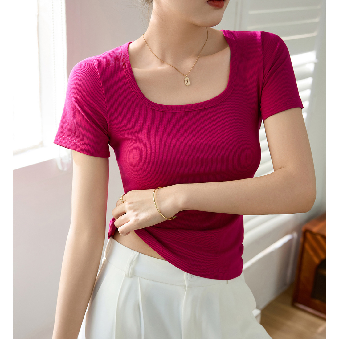 【用好料】高弹螺纹棉2025夏装新款百搭T恤女短袖上衣方领打底衫