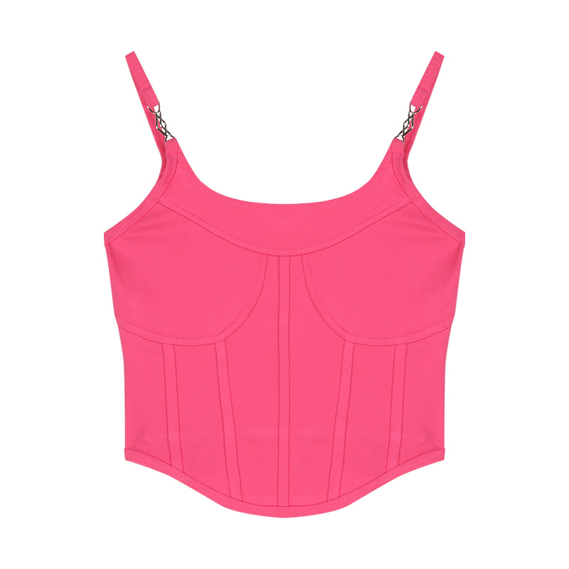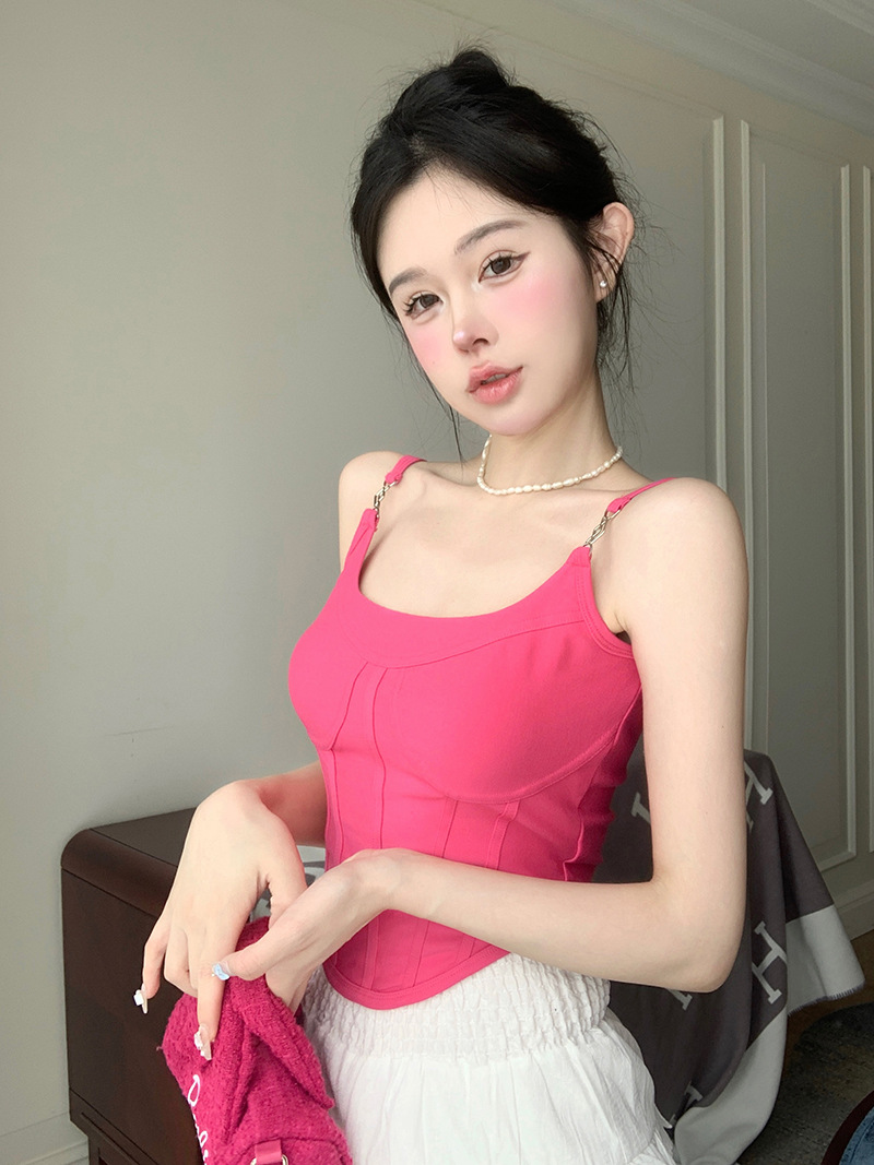 短款玫粉色鱼骨小吊带女夏季外穿露背无袖背心内搭不规则性感上衣