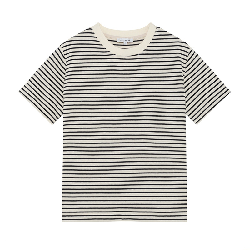 竹节棉条纹短袖t恤女ins潮女夏季纯棉宽松打底上衣宽松体恤衫