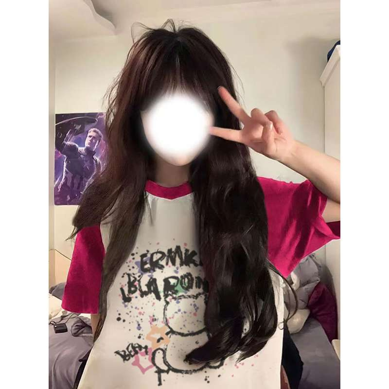 200斤美式高级感多巴胺纯棉短袖t恤女夏季大码胖mm插肩半袖上衣