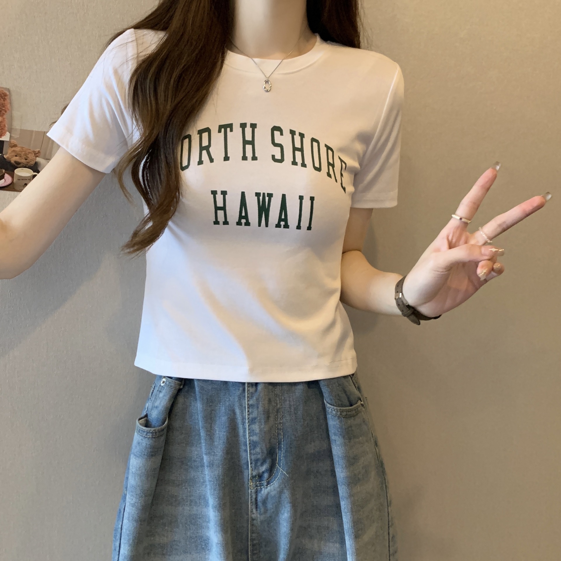 美式印花短袖t恤女夏季体恤设计感露脐修身短款上衣