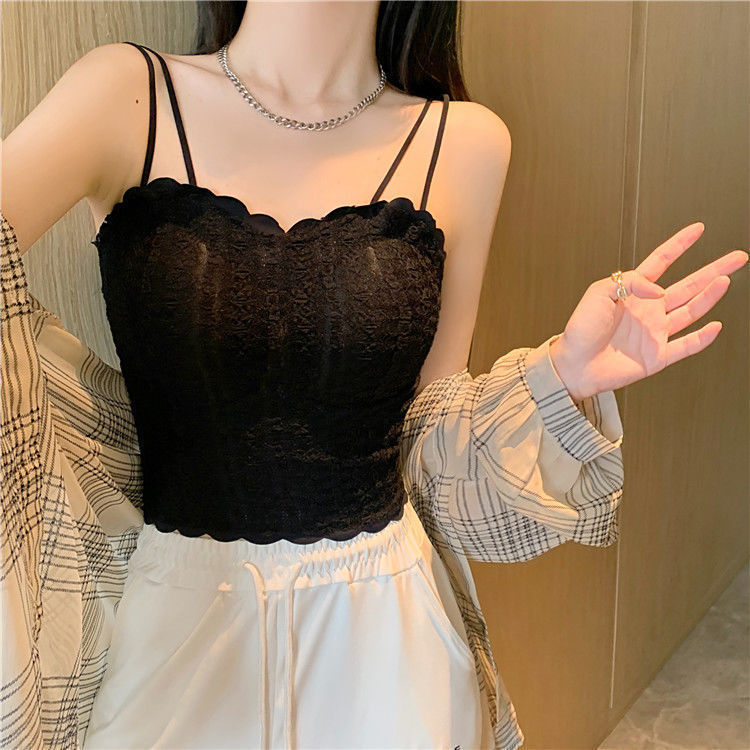 新款时尚蕾丝性感吊带美背带胸垫裹胸内衣内搭外穿显瘦百搭上衣女