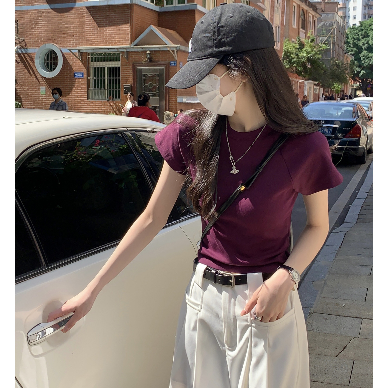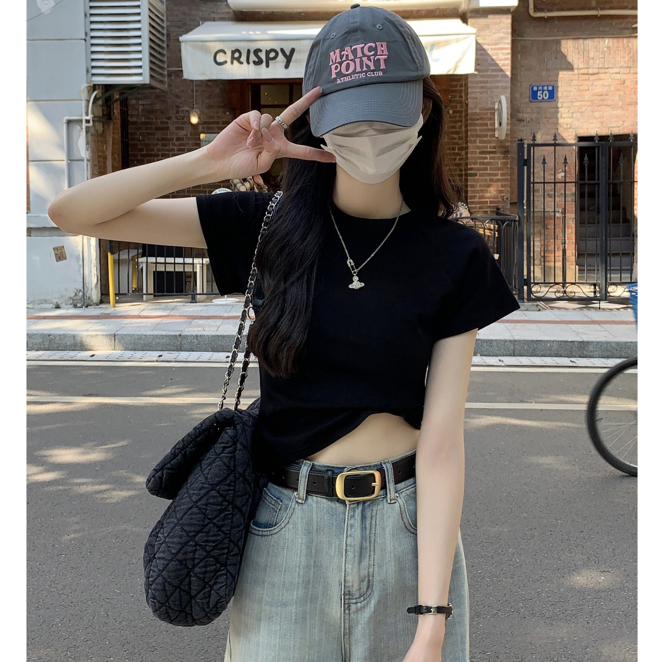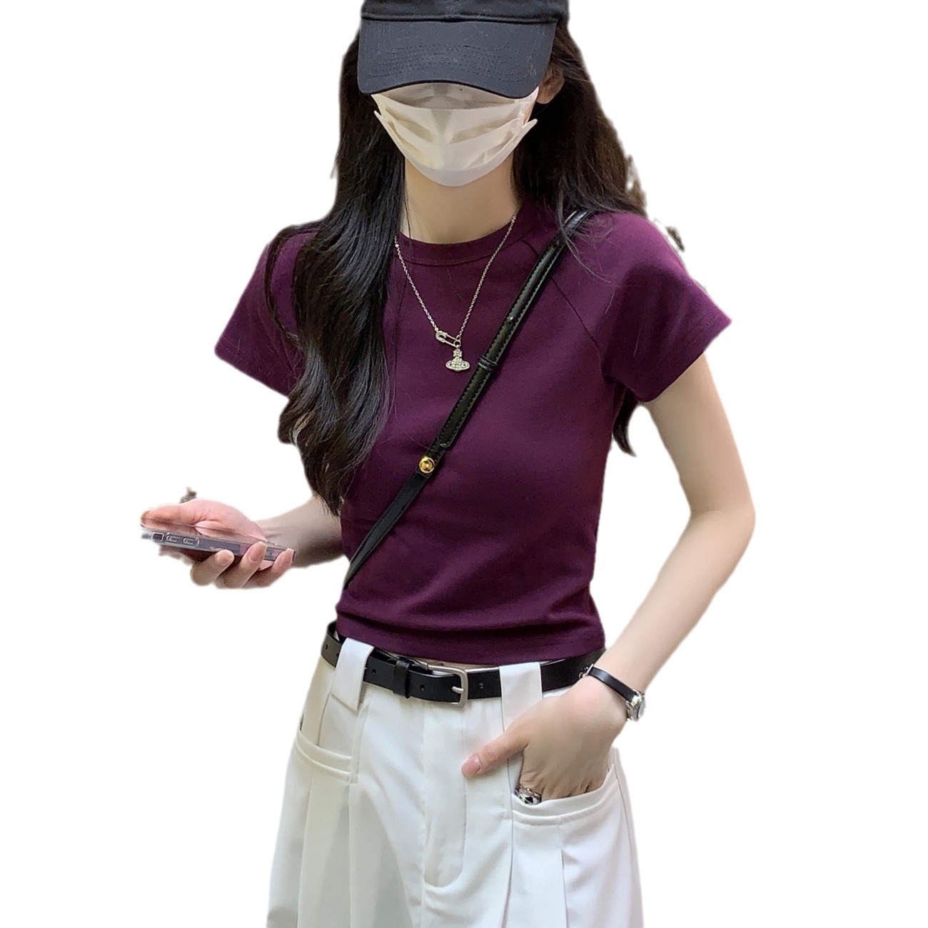 【甄选棉】纯棉高腰短款T恤女夏2025新款圆领插肩上衣短袖打底衫