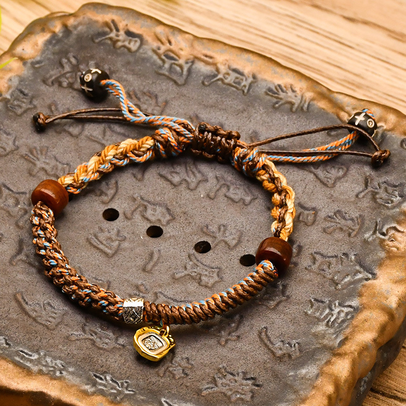 七越全手工编织藏式手绳文玩手链手搓棉绳编绳民族风寓意手饰可调