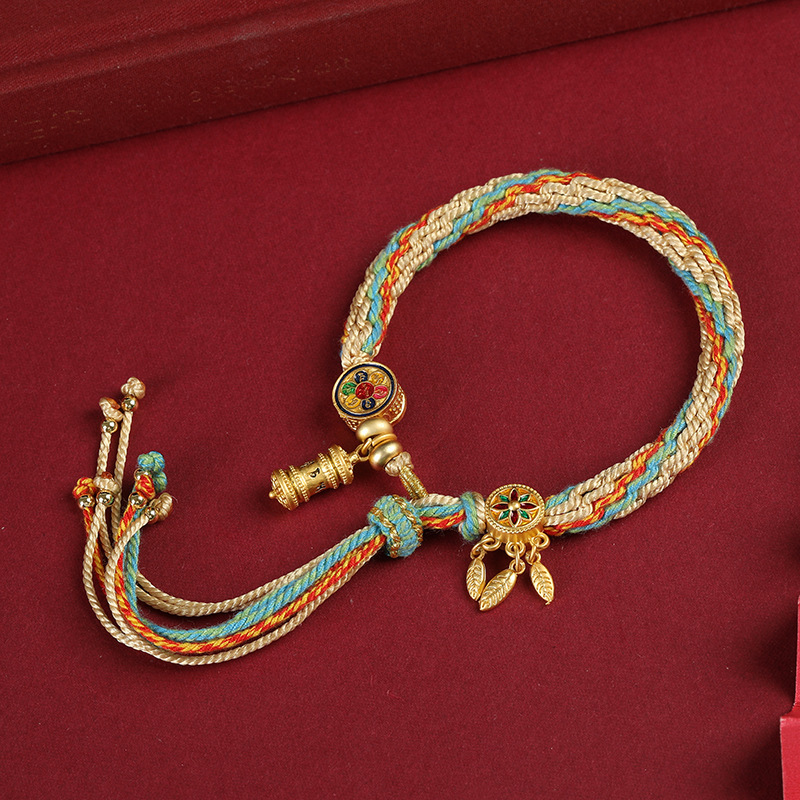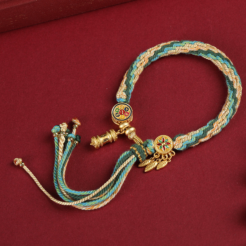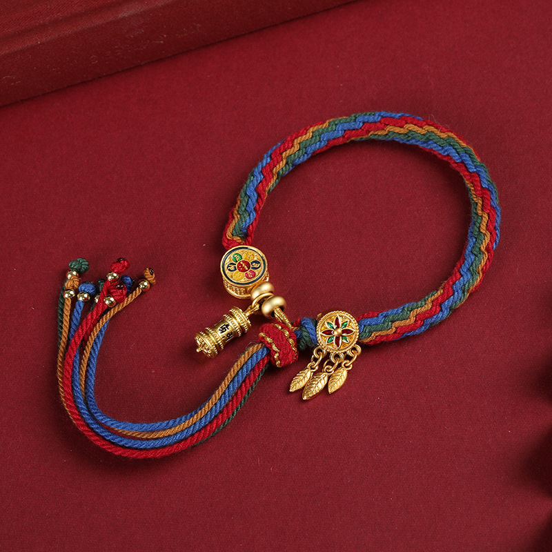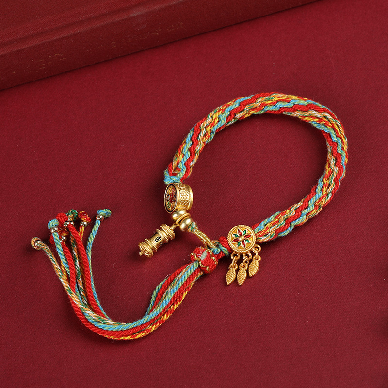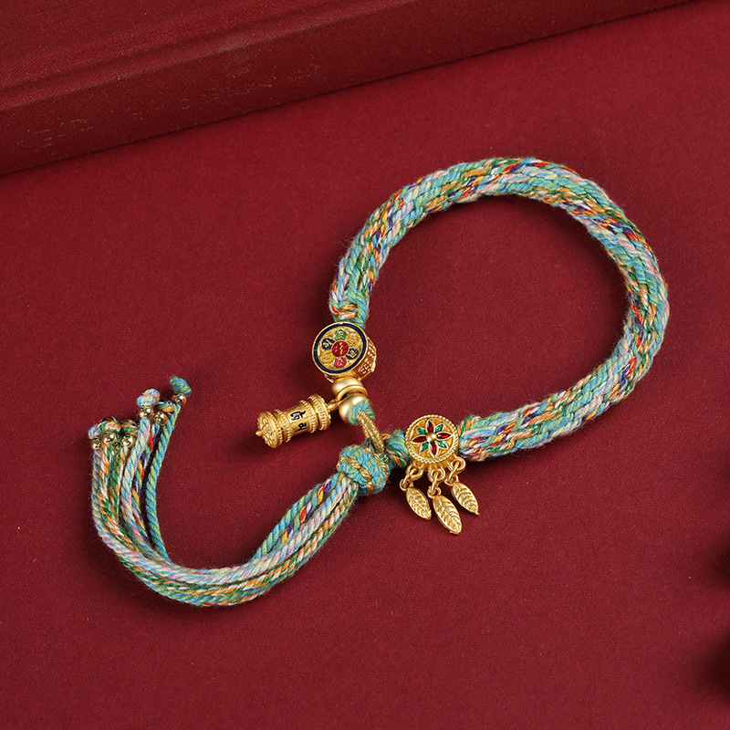 藏式手搓棉线编织手绳转经筒六字真言手工编织手链唐卡轮回手绳