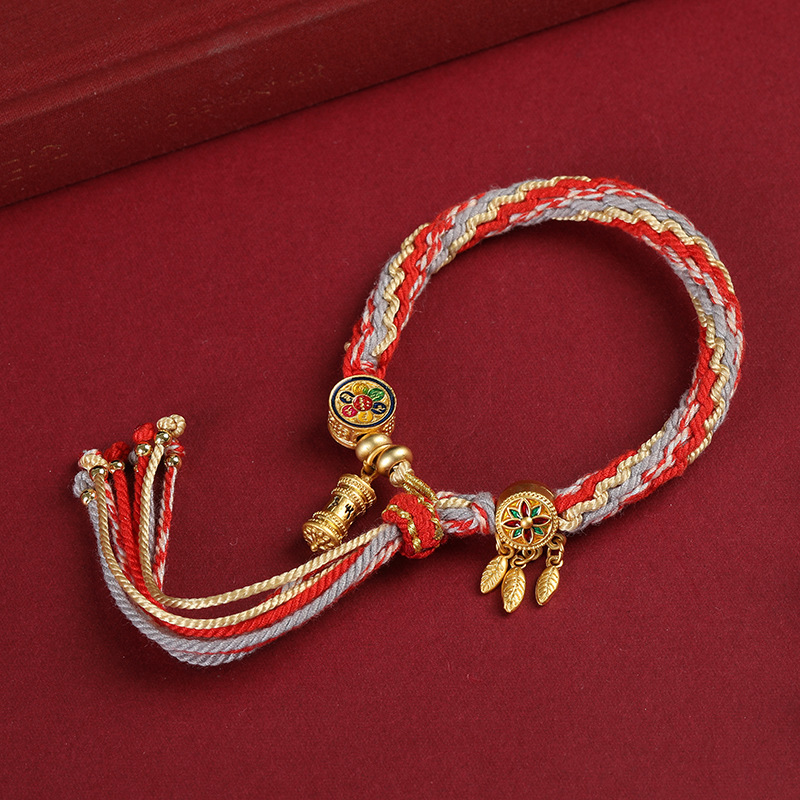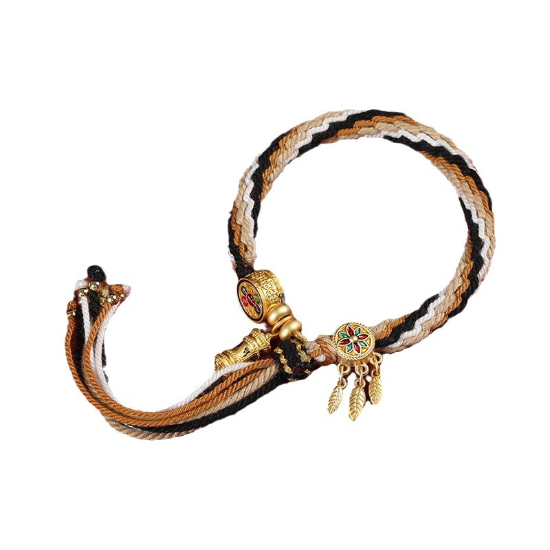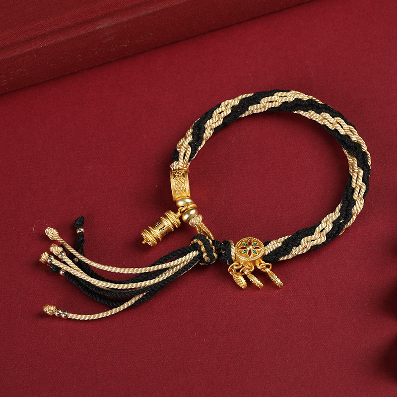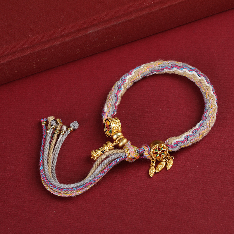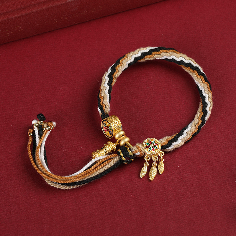 藏式手搓棉线编织手绳转经筒六字真言手工编织手链唐卡轮回手绳