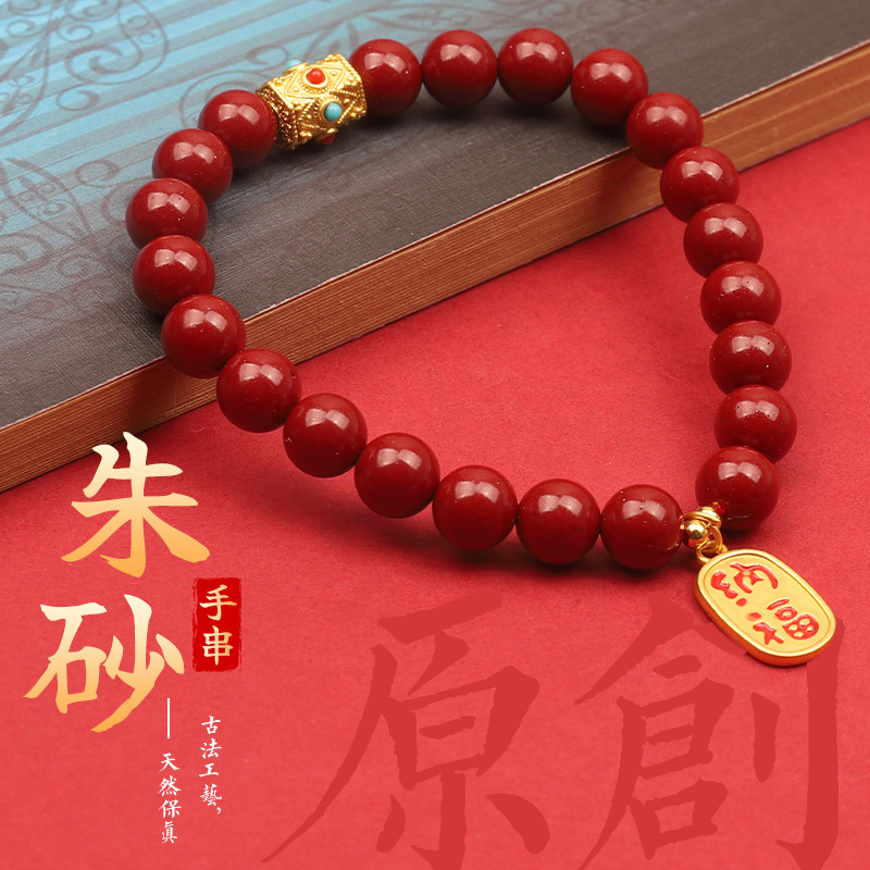 手链朱砂女金榜题名高货紫金砂原创设计单圈情侣朱砂莲花手串