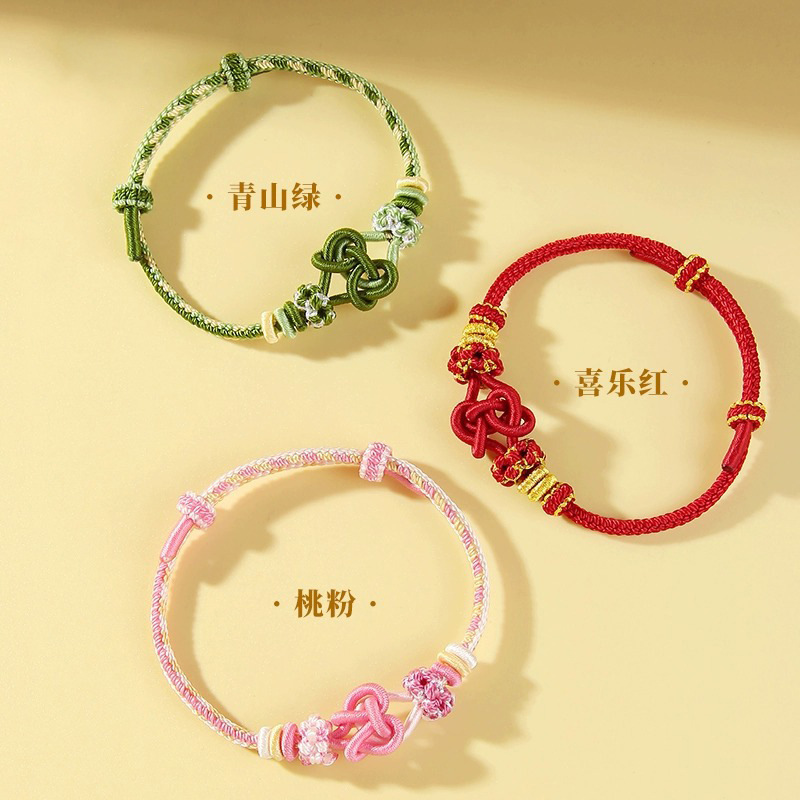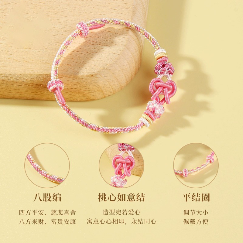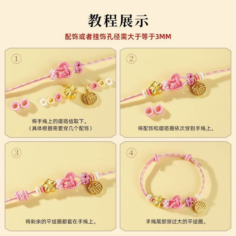 diy手工编织红绳手链女男桃花手绳八股可穿黄金转运珠儿童送礼物